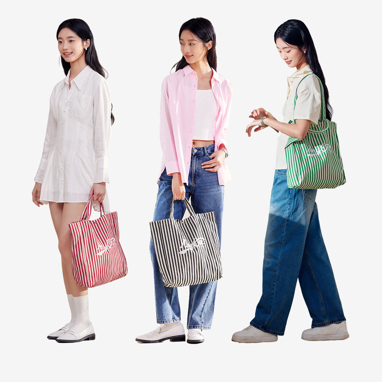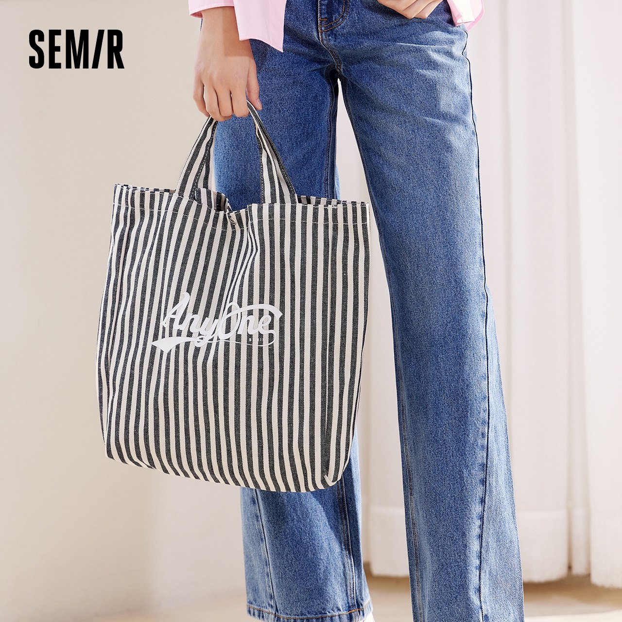 森马包包帆布袋女2024新款时尚撞色条纹单肩包大容量手提包氛围感