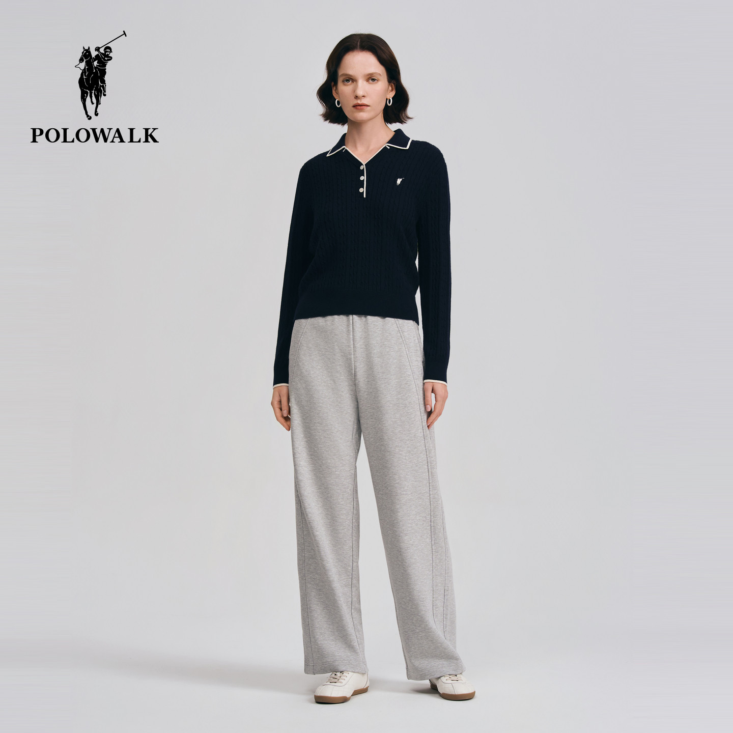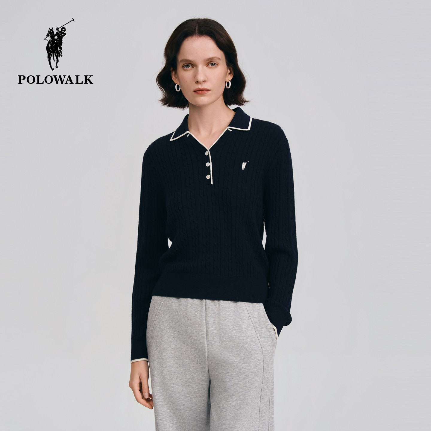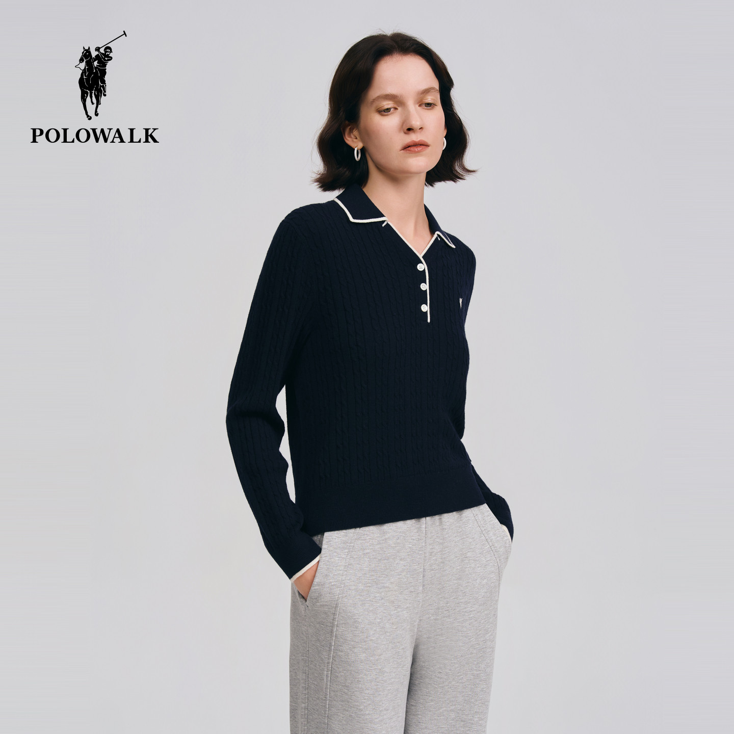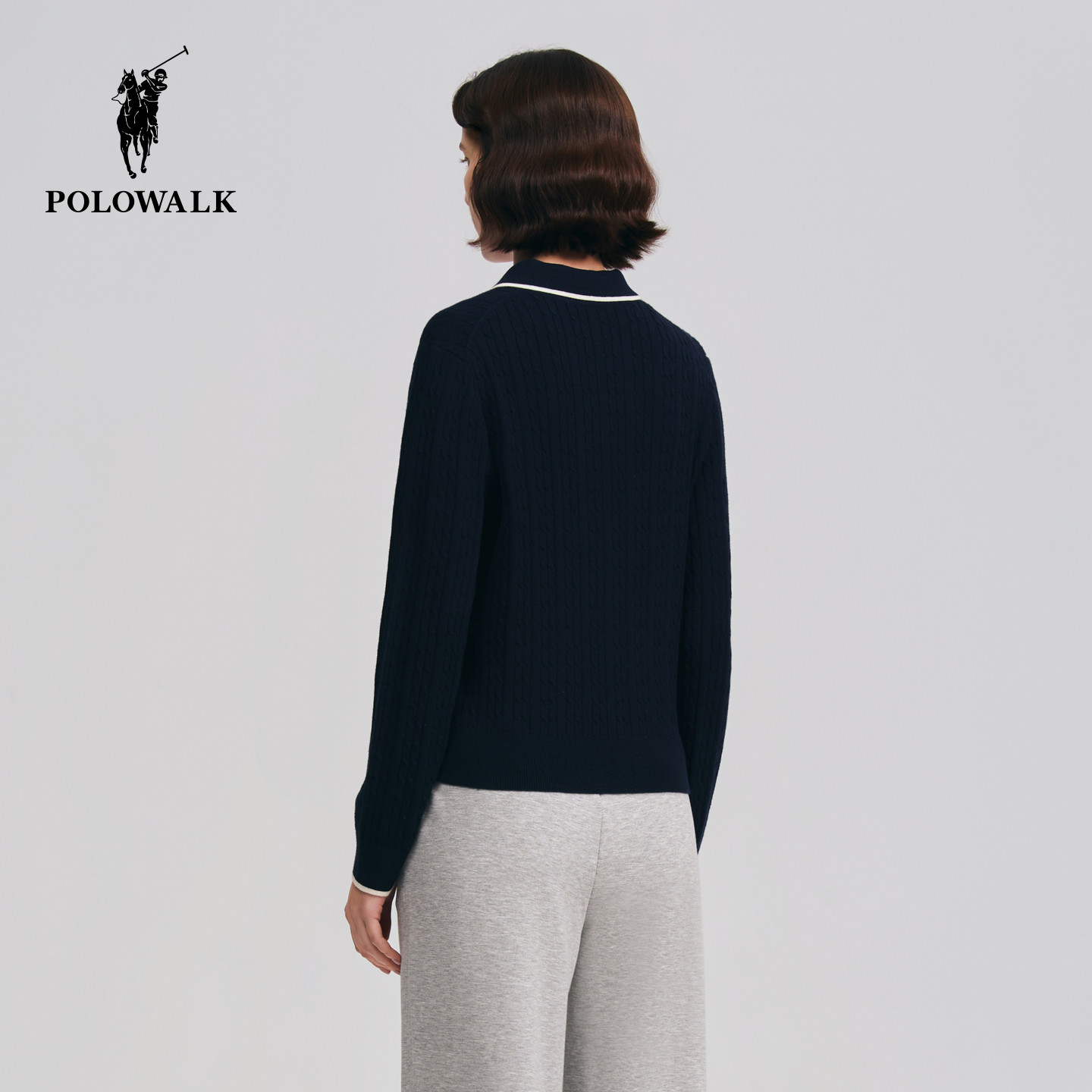 POLOWALK女式长袖针织衫2026春季新品撞色显瘦小V领长袖针织衫女