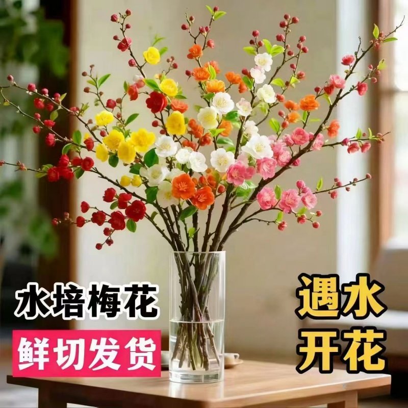 爆款开花浓香型水培鲜切梅花干枝带花苞室内耐寒花卉绿植客厅阳台