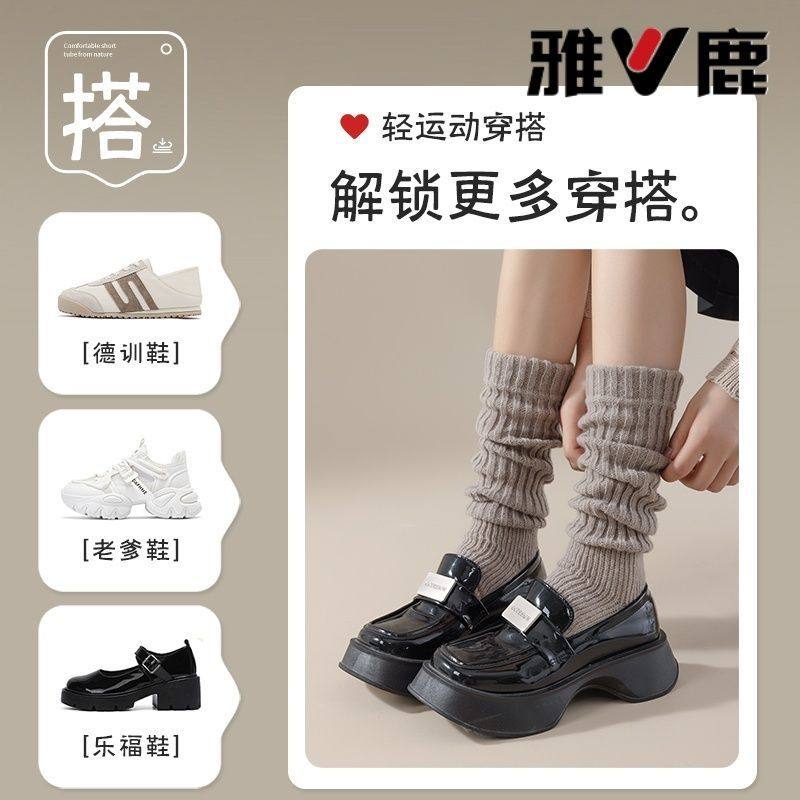 鹿人女袜秋冬款纯棉高筒袜舒适简约撞色新疆长绒棉条纹长袜女3129