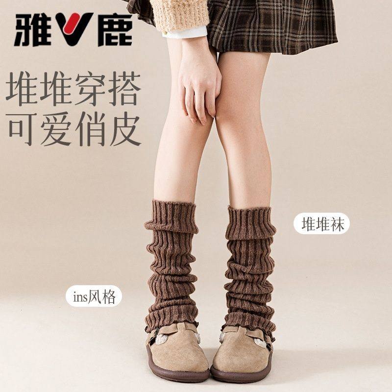 显瘦堆堆袜套针织袜子女秋冬保暖喇叭型护膝腿套灰色小腿修饰高筒