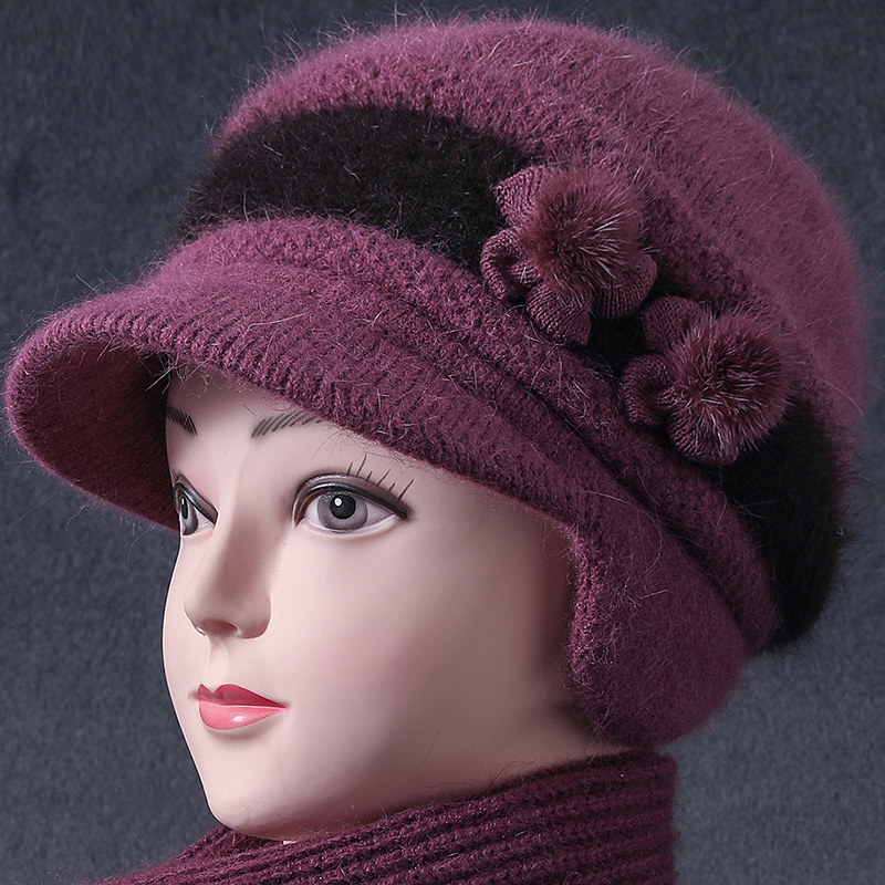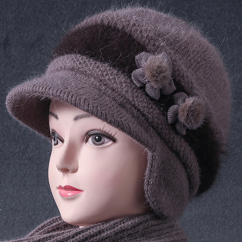 中老年人妈妈毛线帽女士冬季加绒加厚兔毛保暖老太太奶奶帽子洋气
