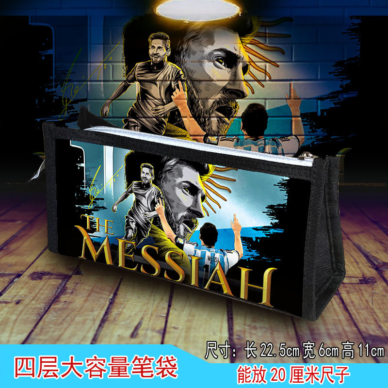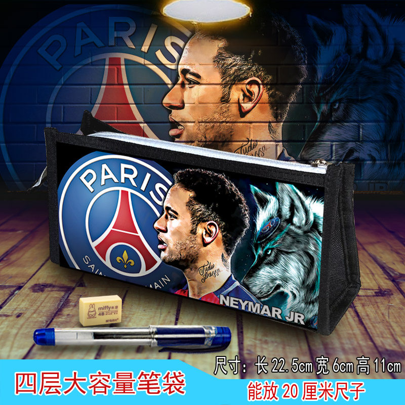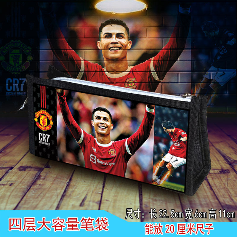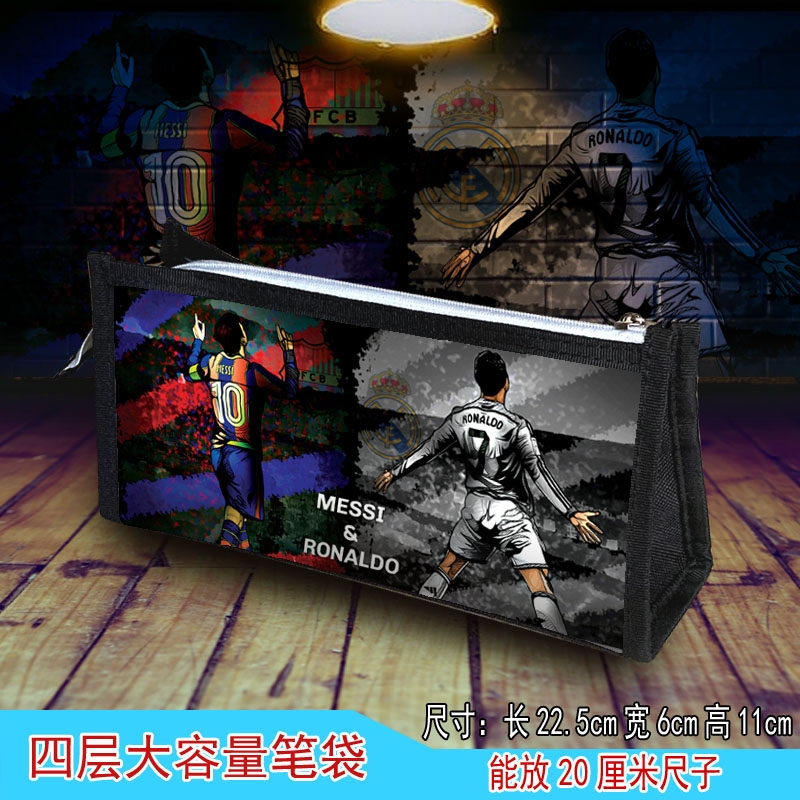 足球明星高清笔袋四层大容量梅西C罗内马尔皇马不掉图文具盒袋