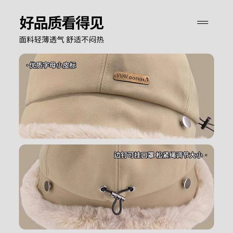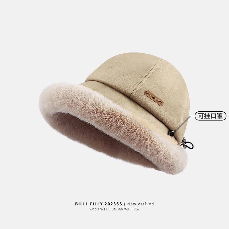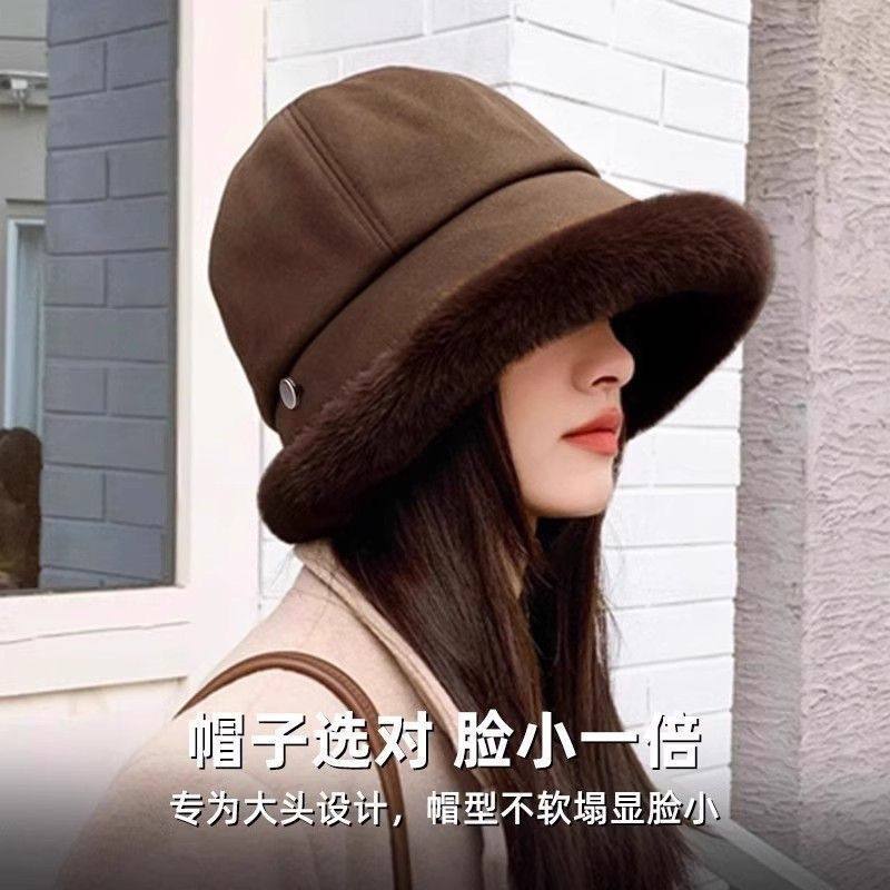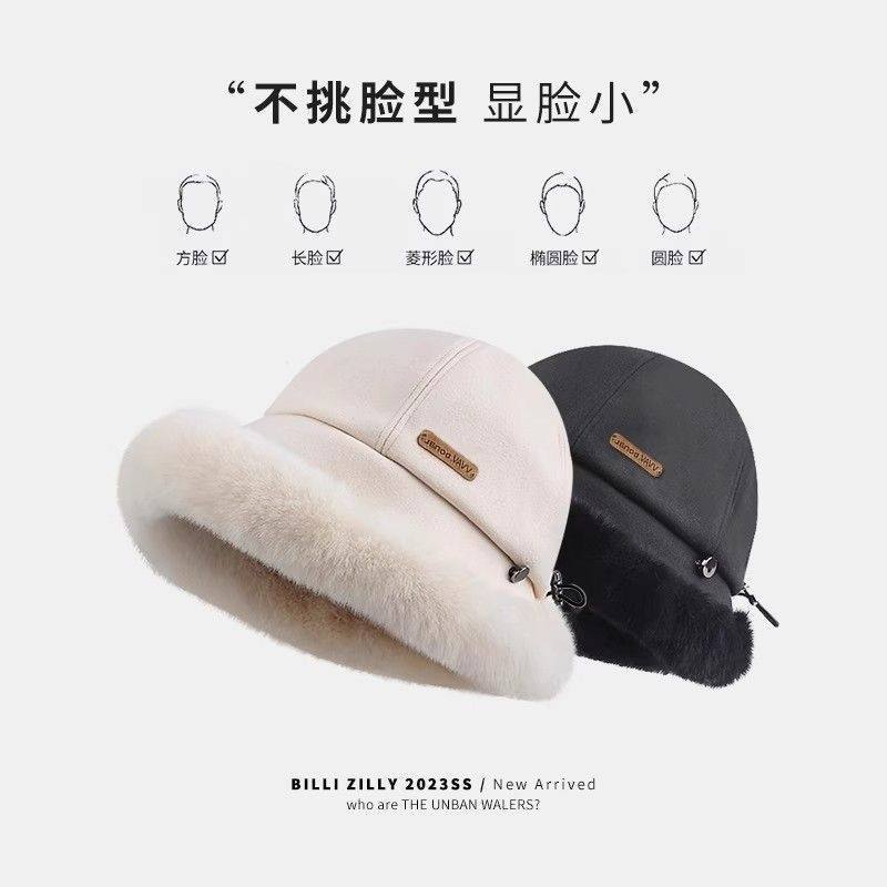 冬季新款毛绒帽子女加绒渔夫帽冬天加厚保暖棉帽东北盆帽防风黑色