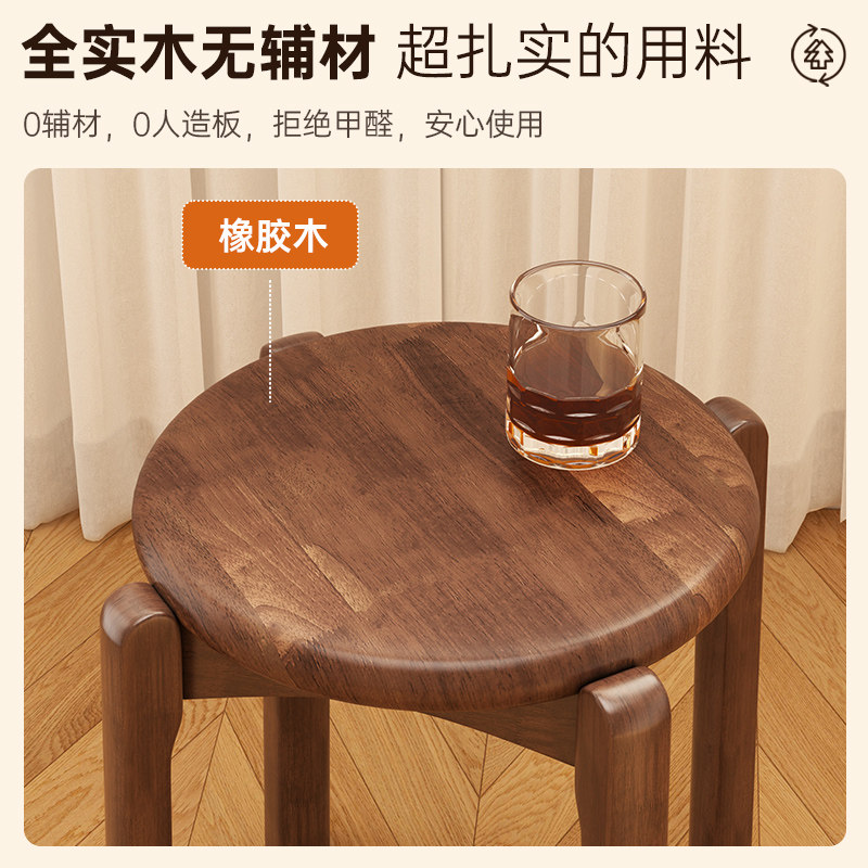 实木圆凳子备用家用可叠放组合凳客厅吃饭凳子餐桌凳椅子叠叠乐