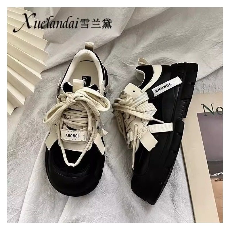 雪兰黛小众设计感奶盖鞋高颜值2024秋季新款透气增高厚底老爹鞋女