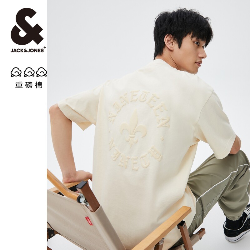 【重磅棉】杰克琼斯男装2025年秋季宽松美式刺绣印花男士短袖T恤