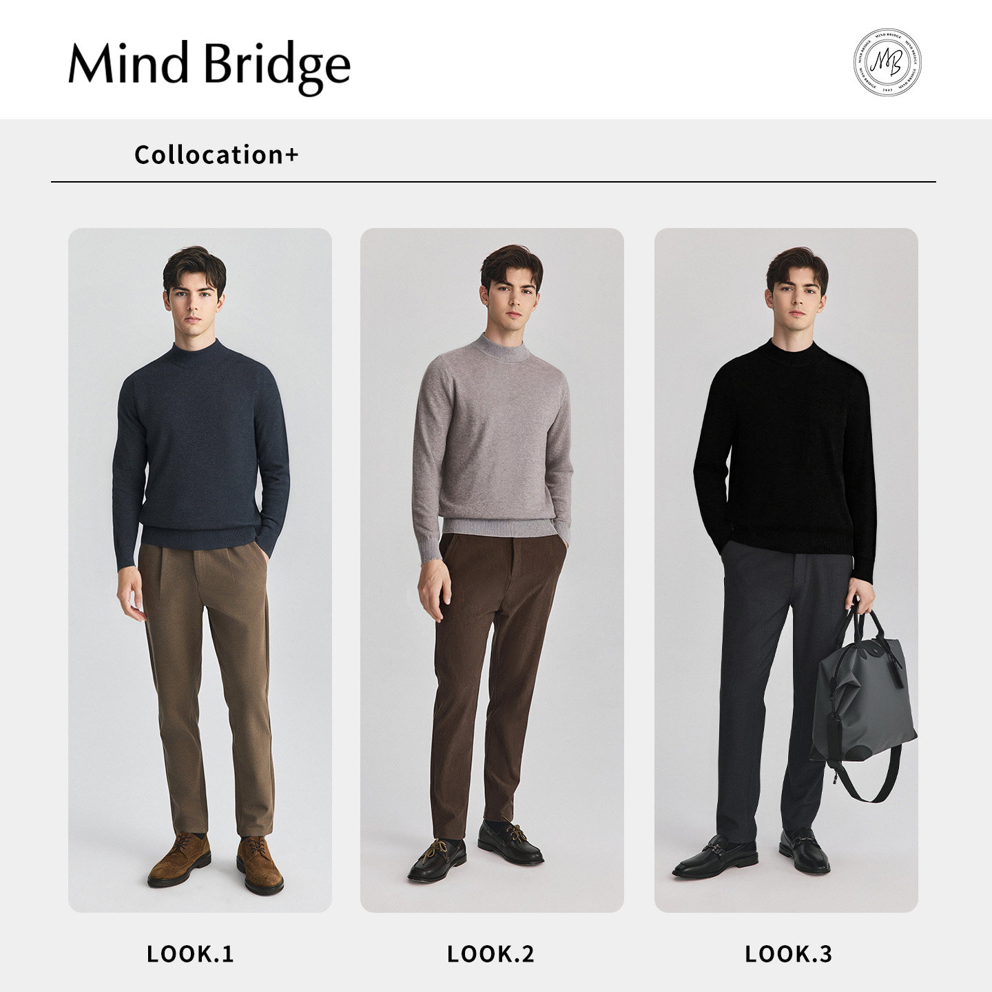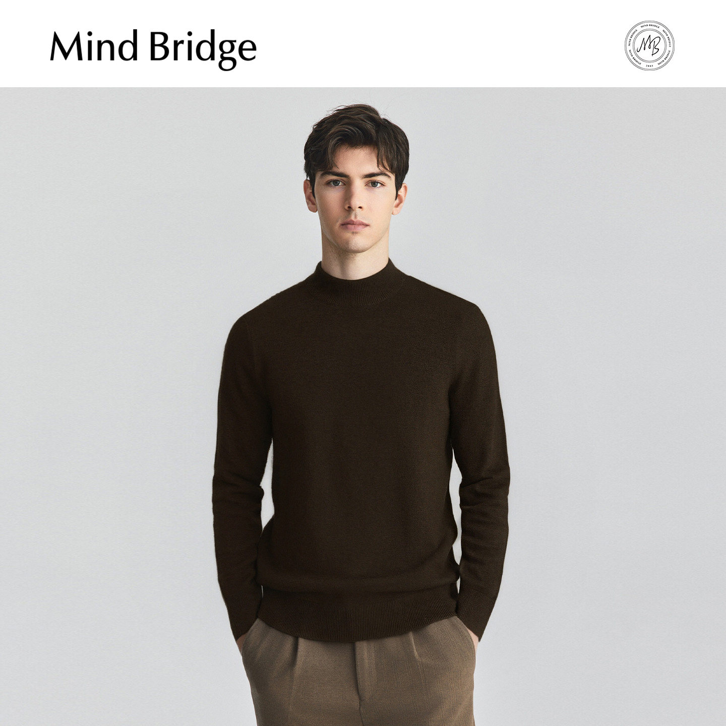 Mind Bridge【绵羊毛】男士纯色百搭针织2025年冬半高领打底毛衣