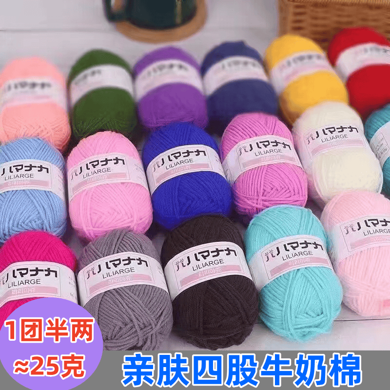 4股牛奶棉中粗棉线手工编织宝宝线围巾线钩鞋玩偶diy材料包毛线团