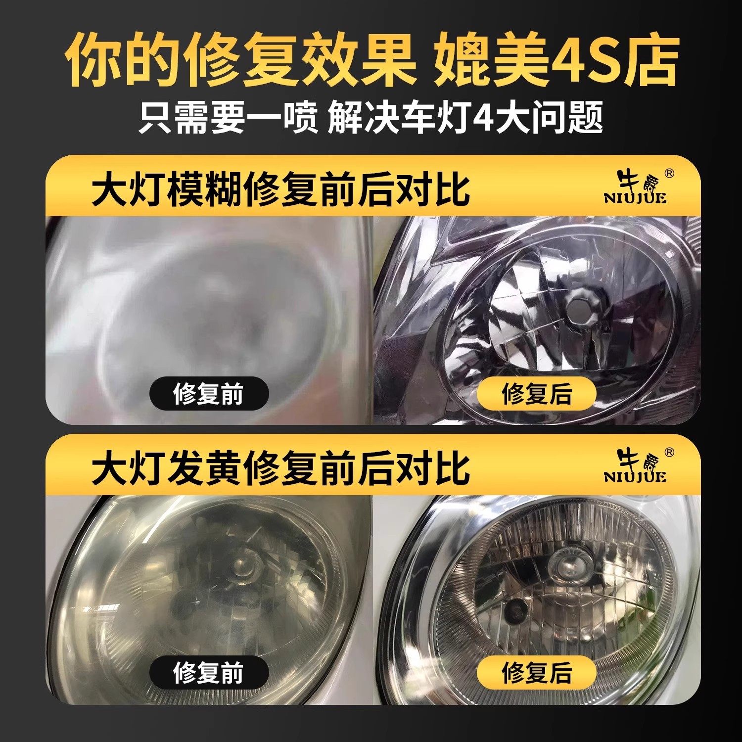 汽车大灯翻新修复液发黄老化工具套装免打磨镀膜抛光速亮还原剂