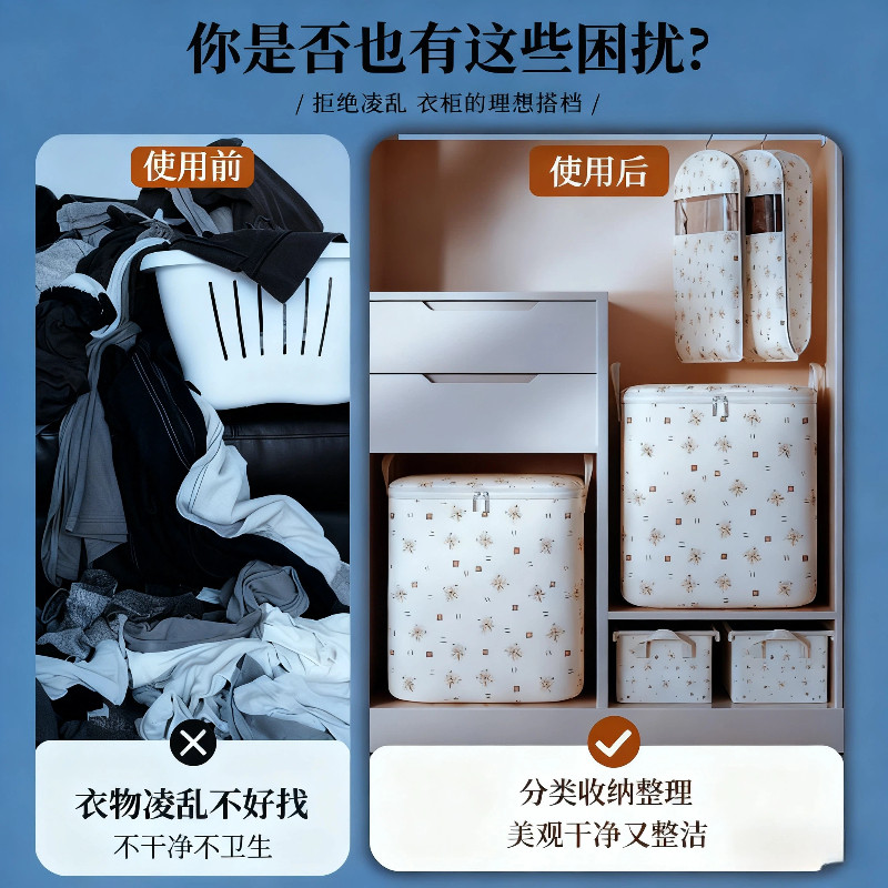 拍1发4衣服收纳筐神器布艺装衣物衣柜分层收纳箱家用框裤子整理盒
