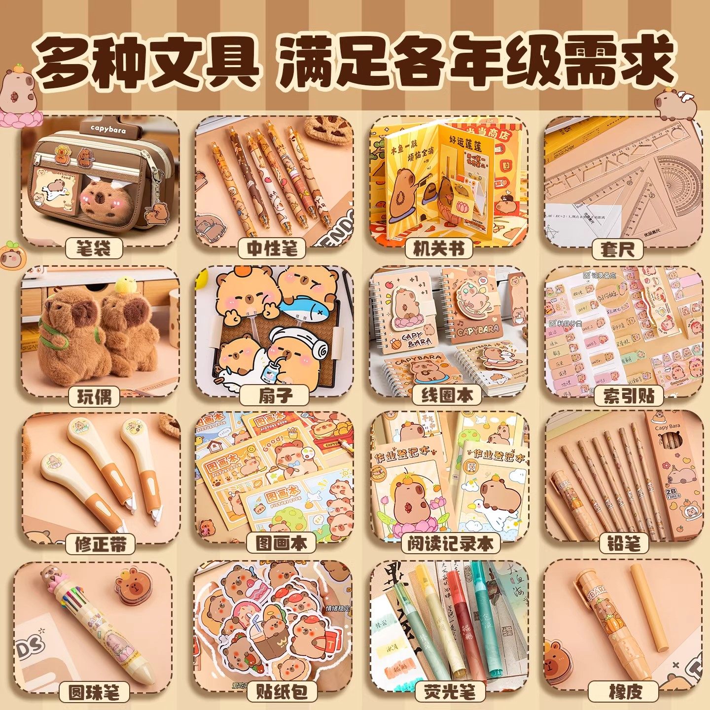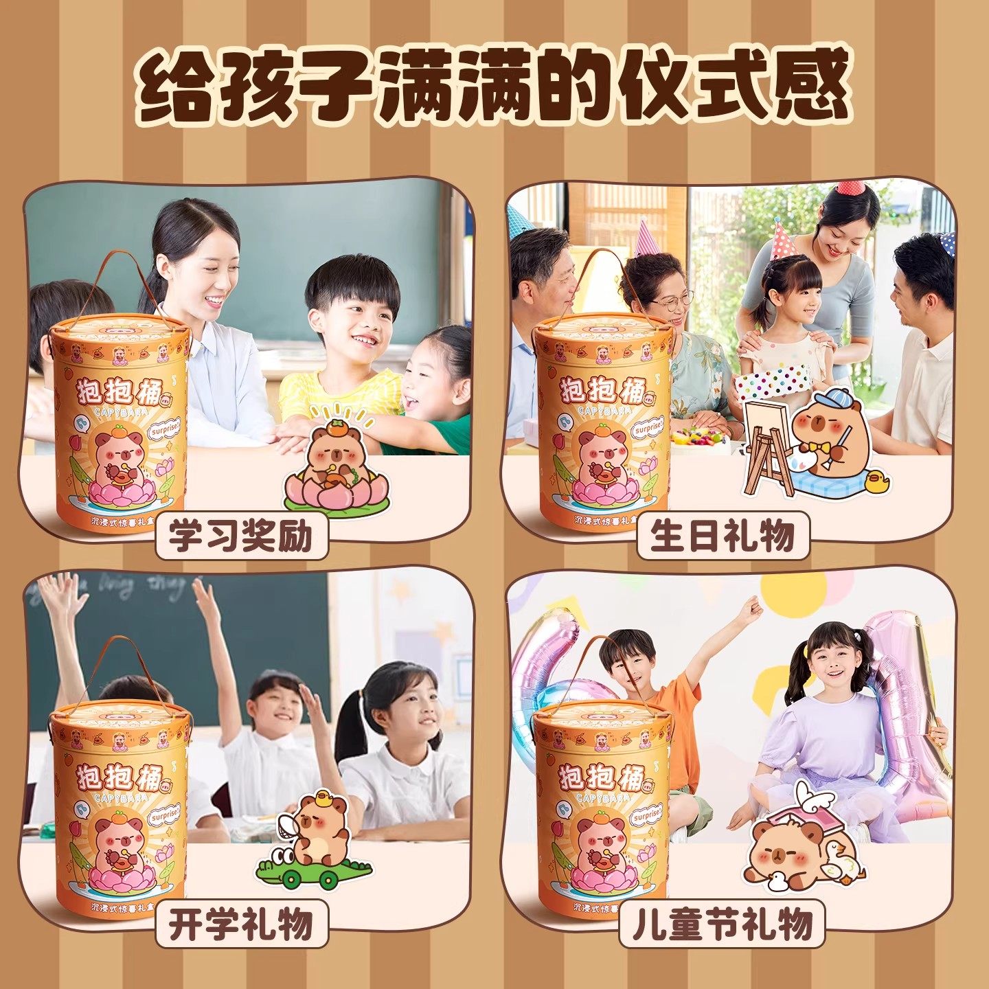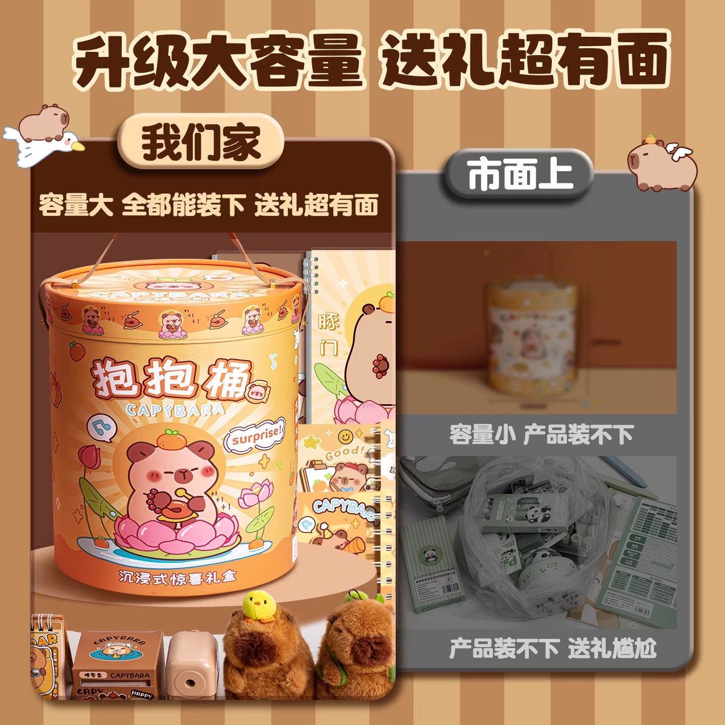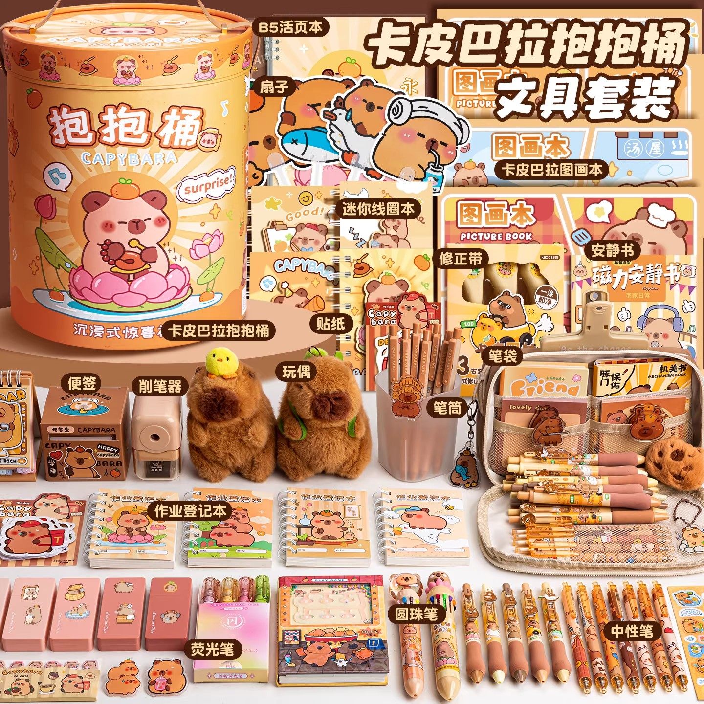 卡皮巴拉抱抱桶文具套装礼盒小学生一年级学习用品儿童开学大礼包实用型男女孩生日礼物幼儿园毕业伴手礼高端