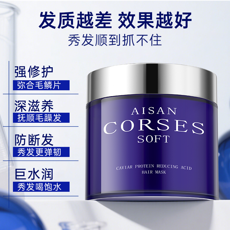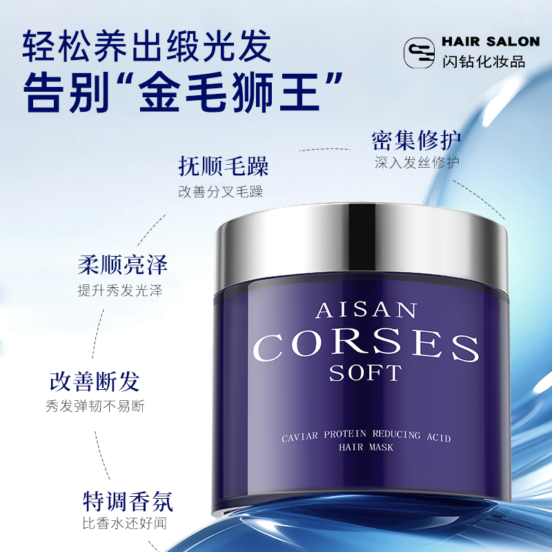 闪钻鱼子酱发膜蛋白还原酸柔顺护发素修护干枯毛躁护发顺滑