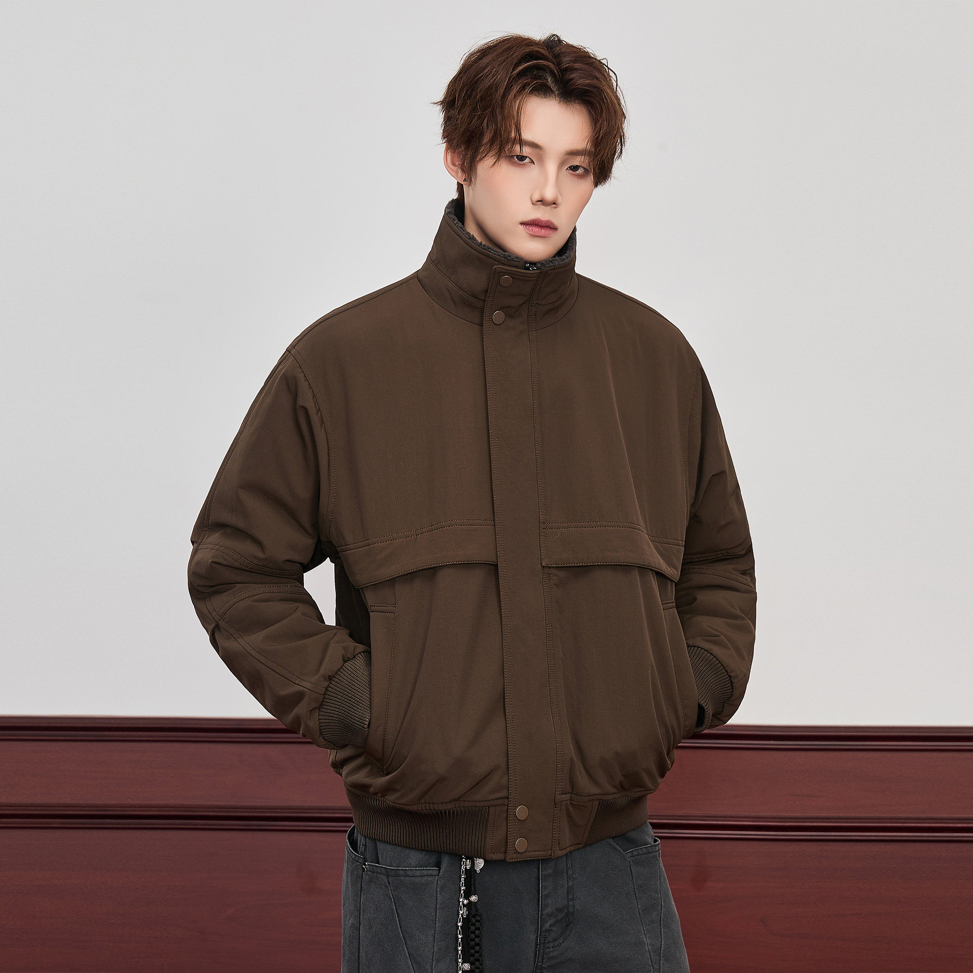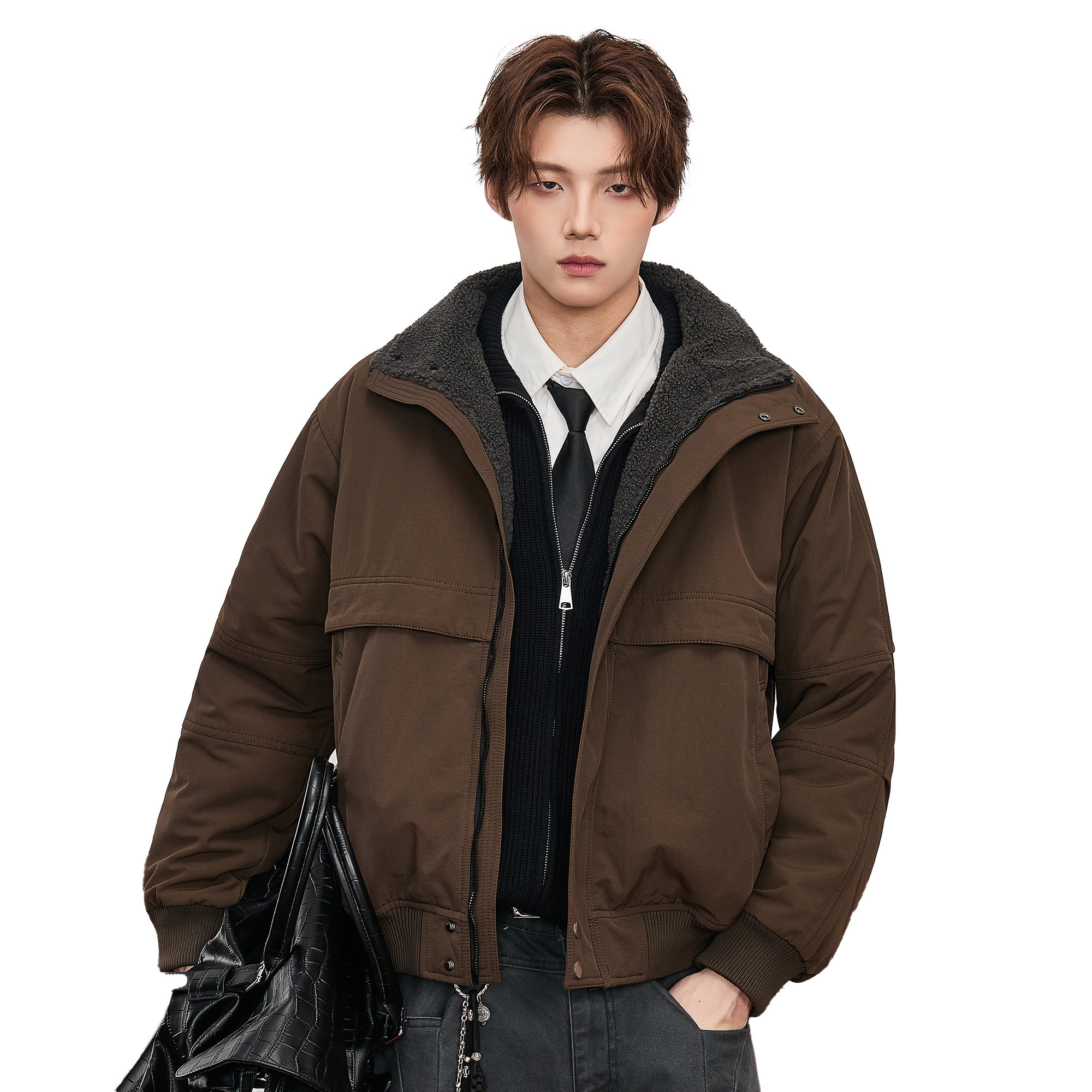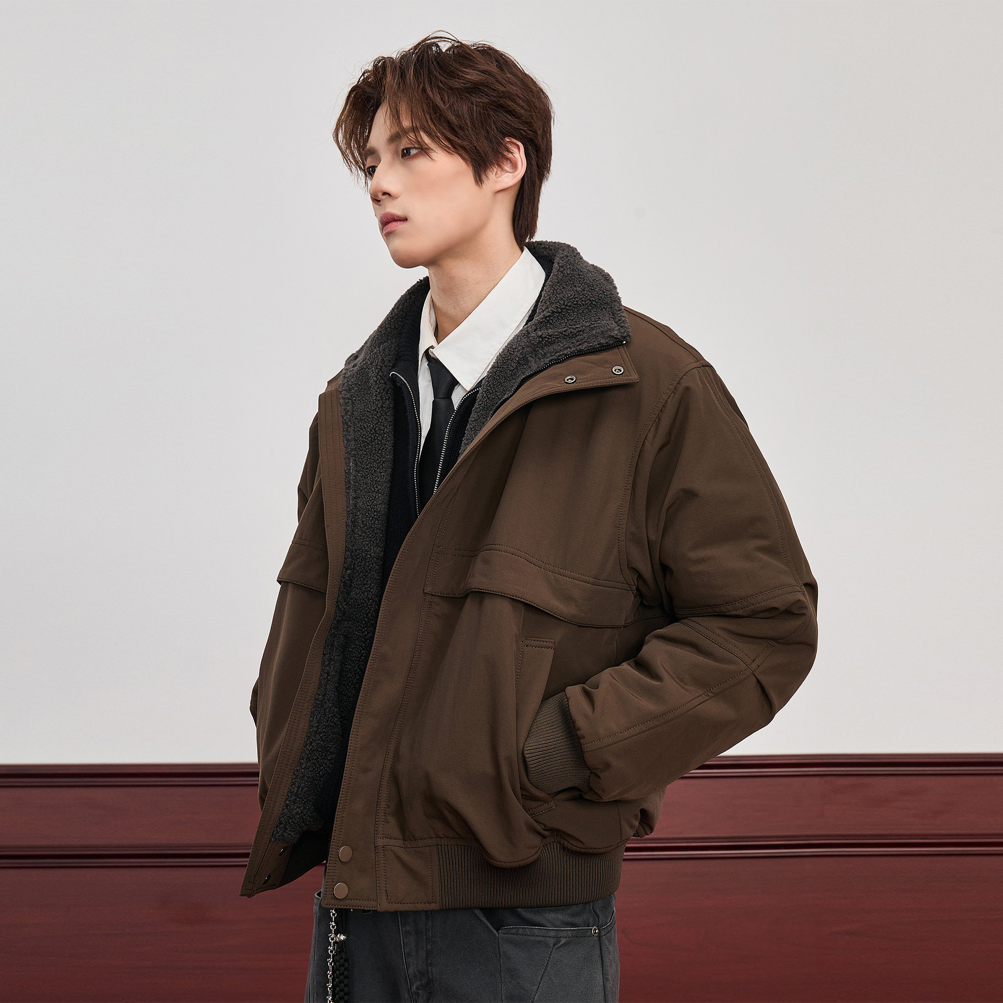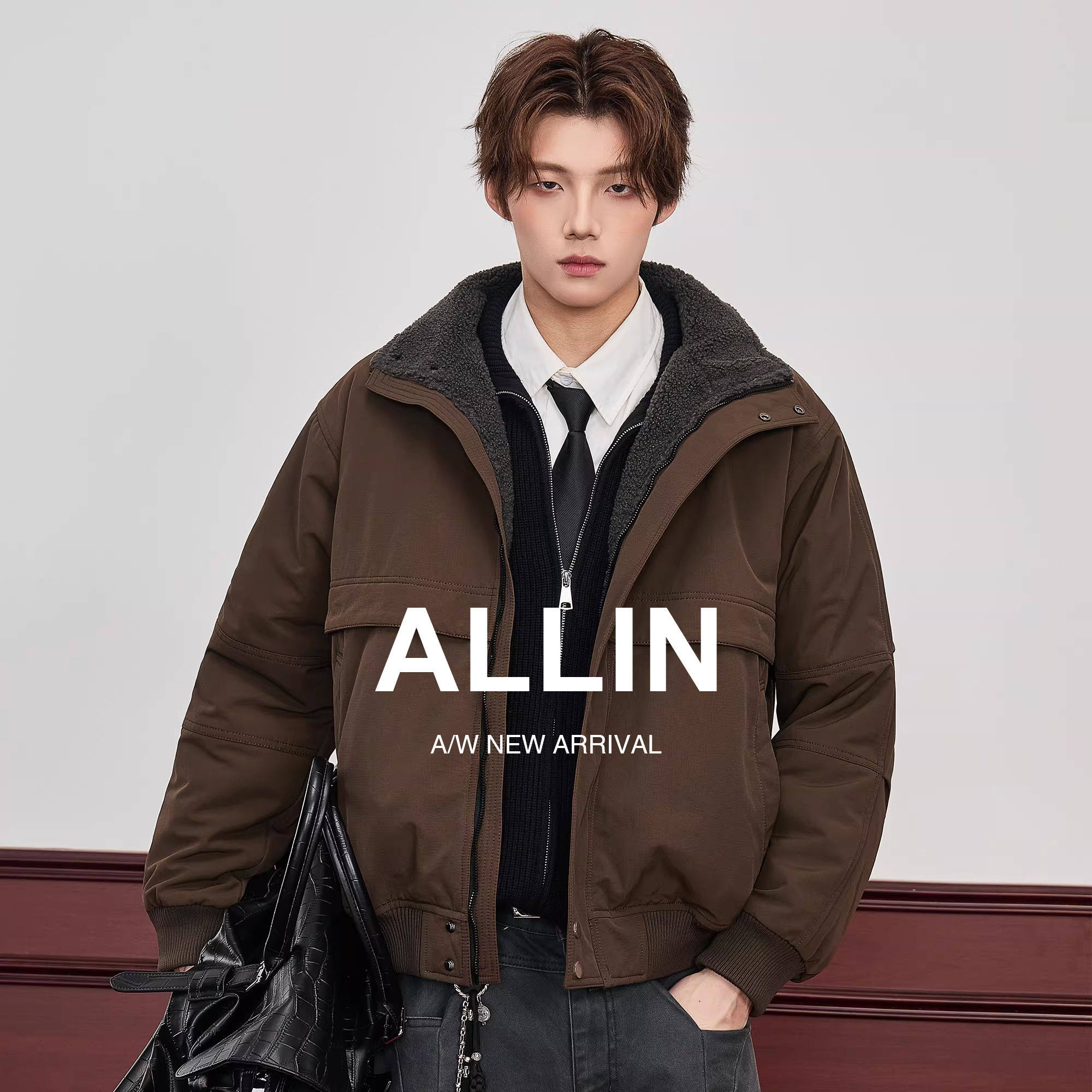ALLIN 冬季加绒加厚外套男生情侣羊羔绒内里保暖工装防风短款夹克