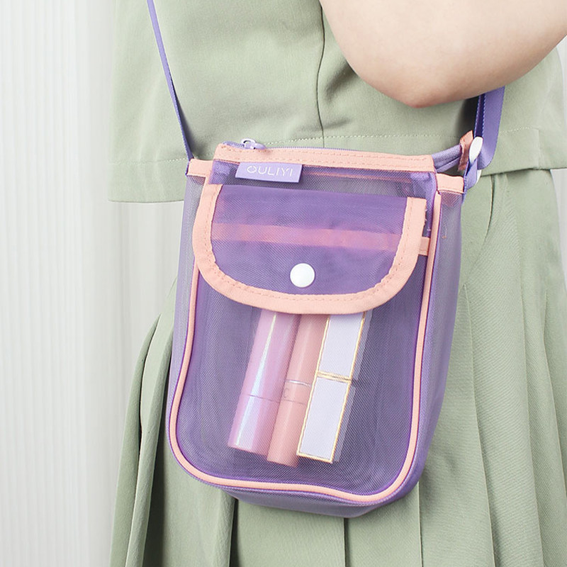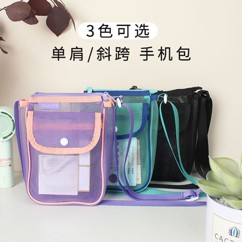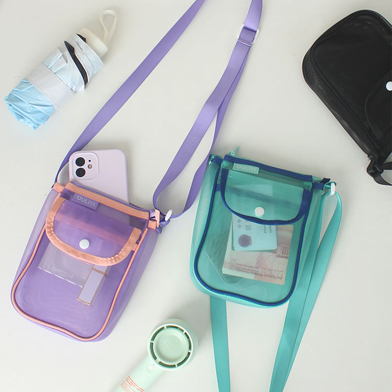 欧力益ouliyi手机包斜跨式女迷你小包单肩透明网纱轻便便携户外袋