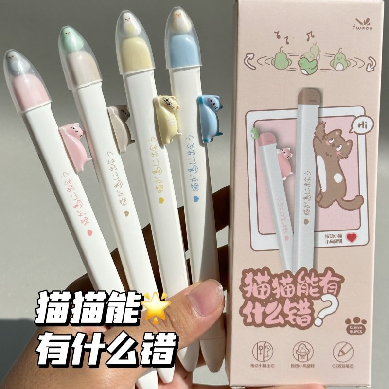 凡物像猫猫磁吸小鸟中性笔ins高颜值学生考试用0.5速干刷题CS黑笔