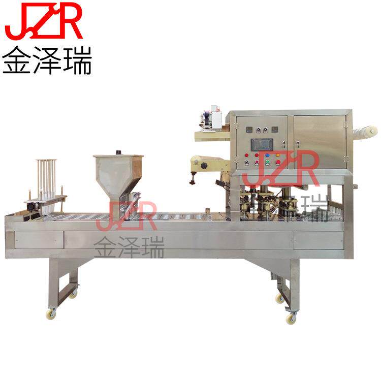 东莞牌全自动封杯机 灌装机果酱辣椒酱酸奶米酒塑料杯封膜机