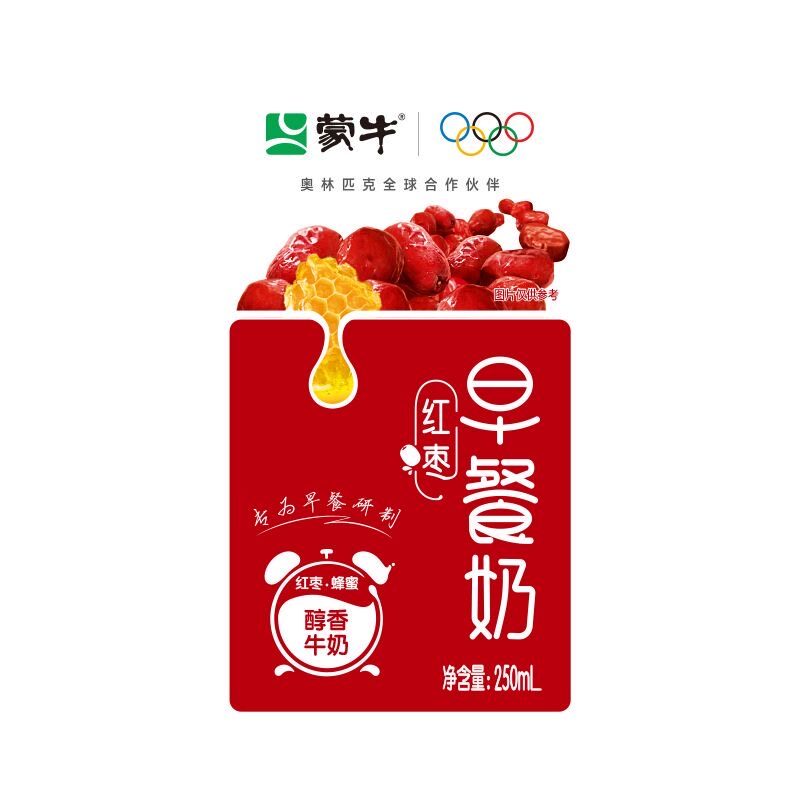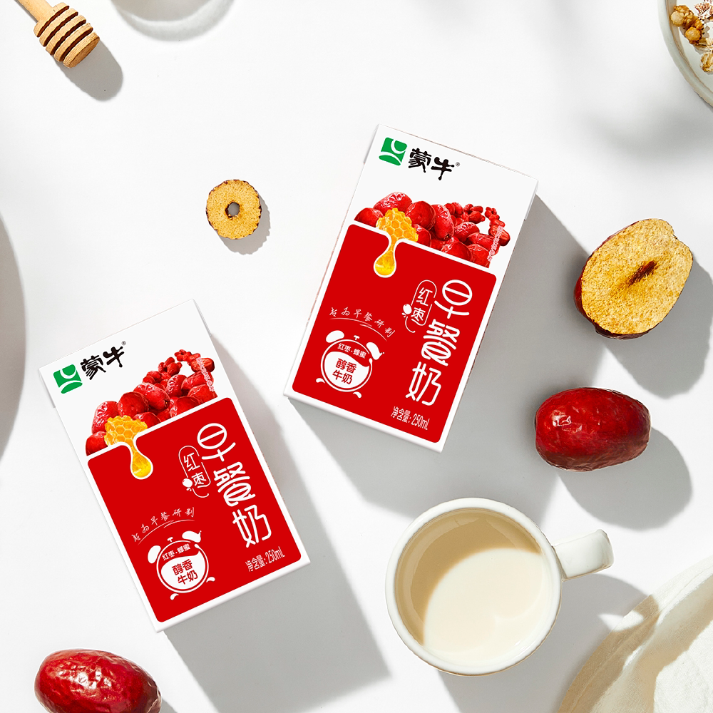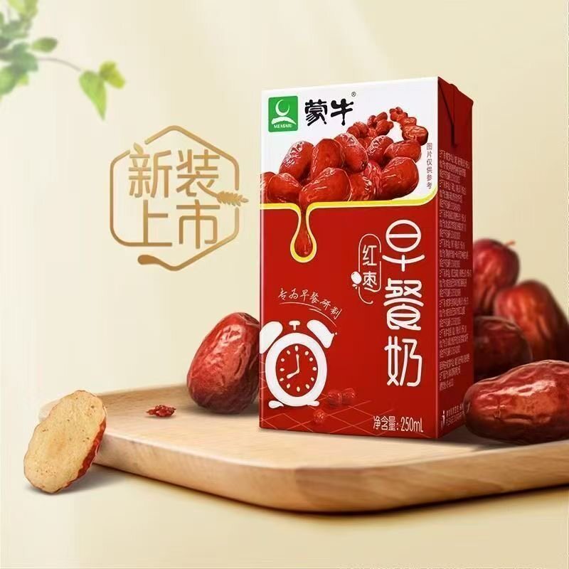 2月产蒙牛早餐红枣牛奶250ml*16盒整箱营养早餐奶牛乳原麦饮用