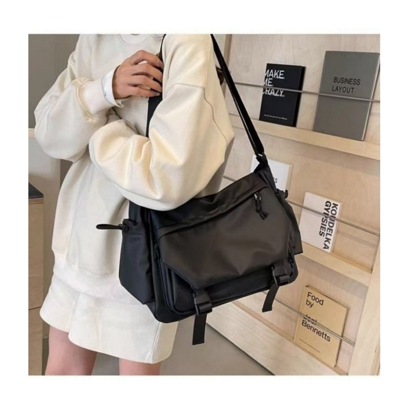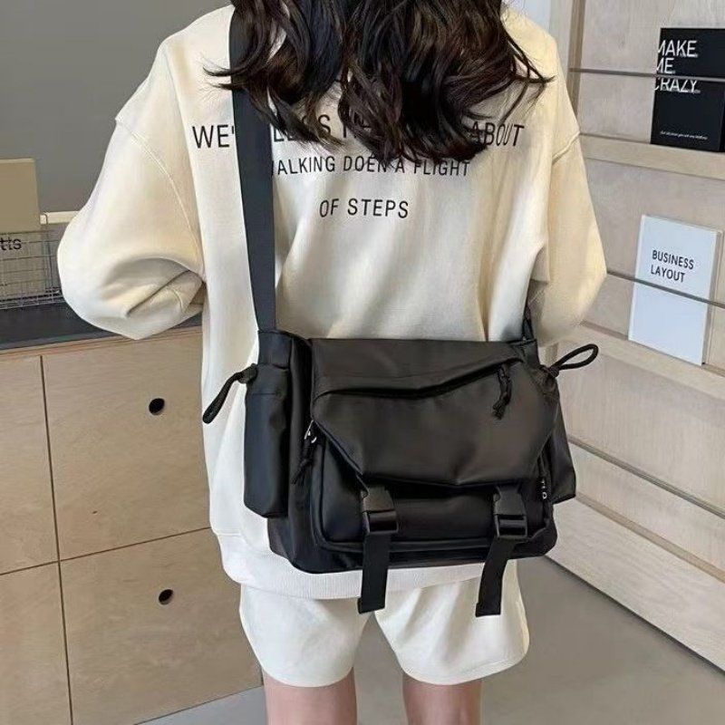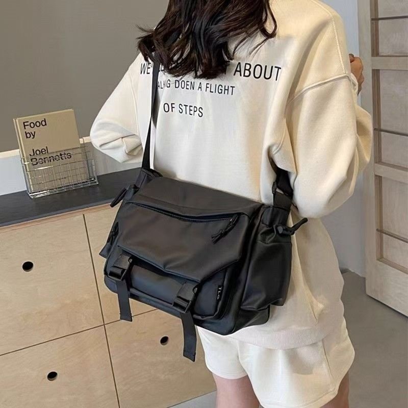 复古休闲邮差包PU防泼水斜挎包女酷飒户外骑行通勤休闲百搭单肩包
