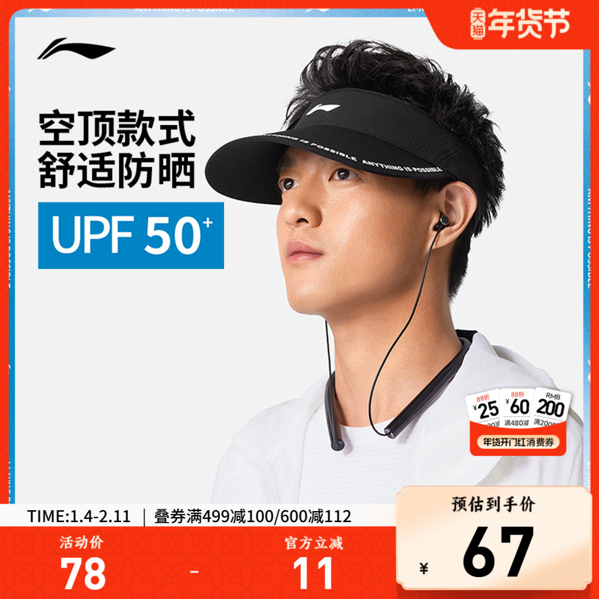 李宁空顶帽官方户外男女同款轻质跑步帽运动吸汗骑行遮阳防晒帽子