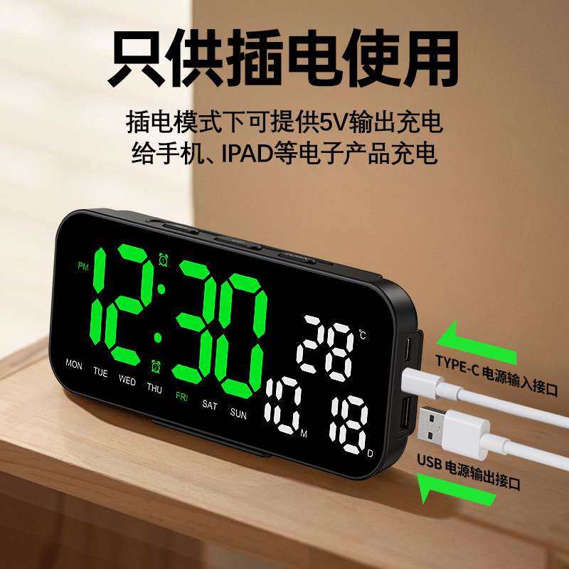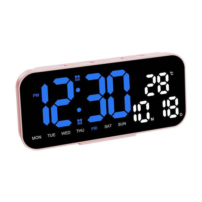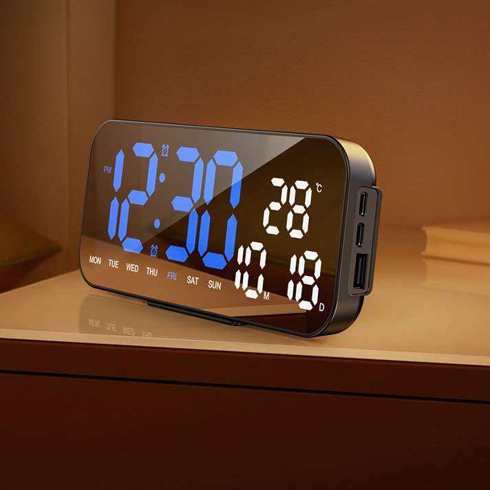 跨镜多功能LED镜面时钟座钟墙壁挂钟电子闹钟学生计时钟万年历时