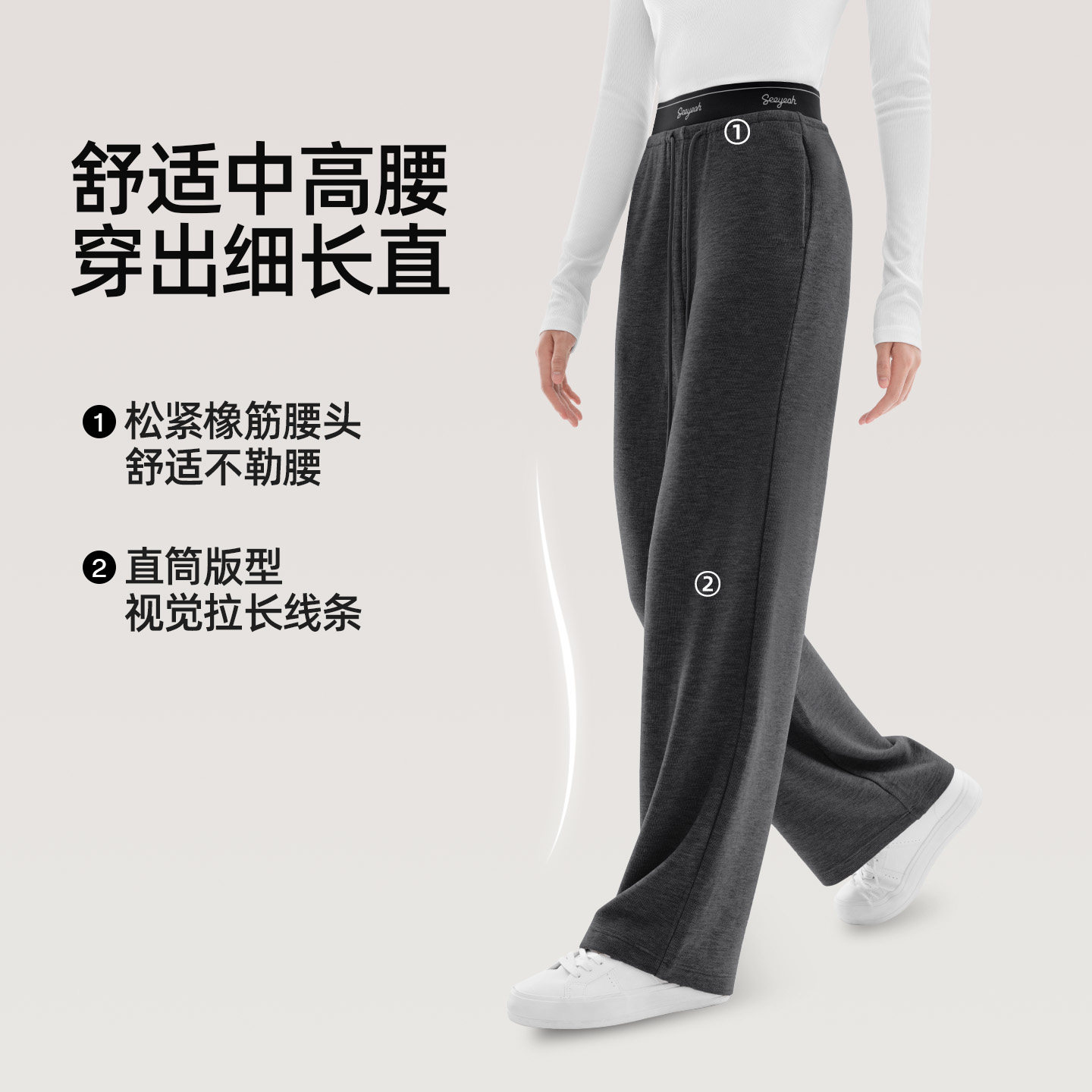 杨幂同款SIINSIIN2025新款白色加绒直筒裤女冬季厚显瘦运动小个子