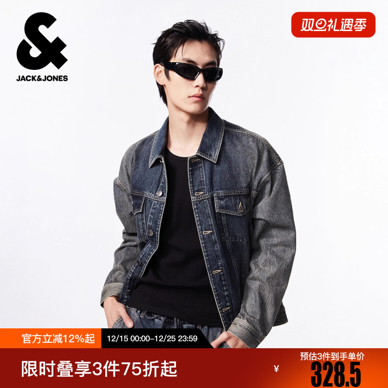 杰克琼斯冬季新款潮酷百搭休闲水洗翻领上衣舒适牛仔夹克外套男装