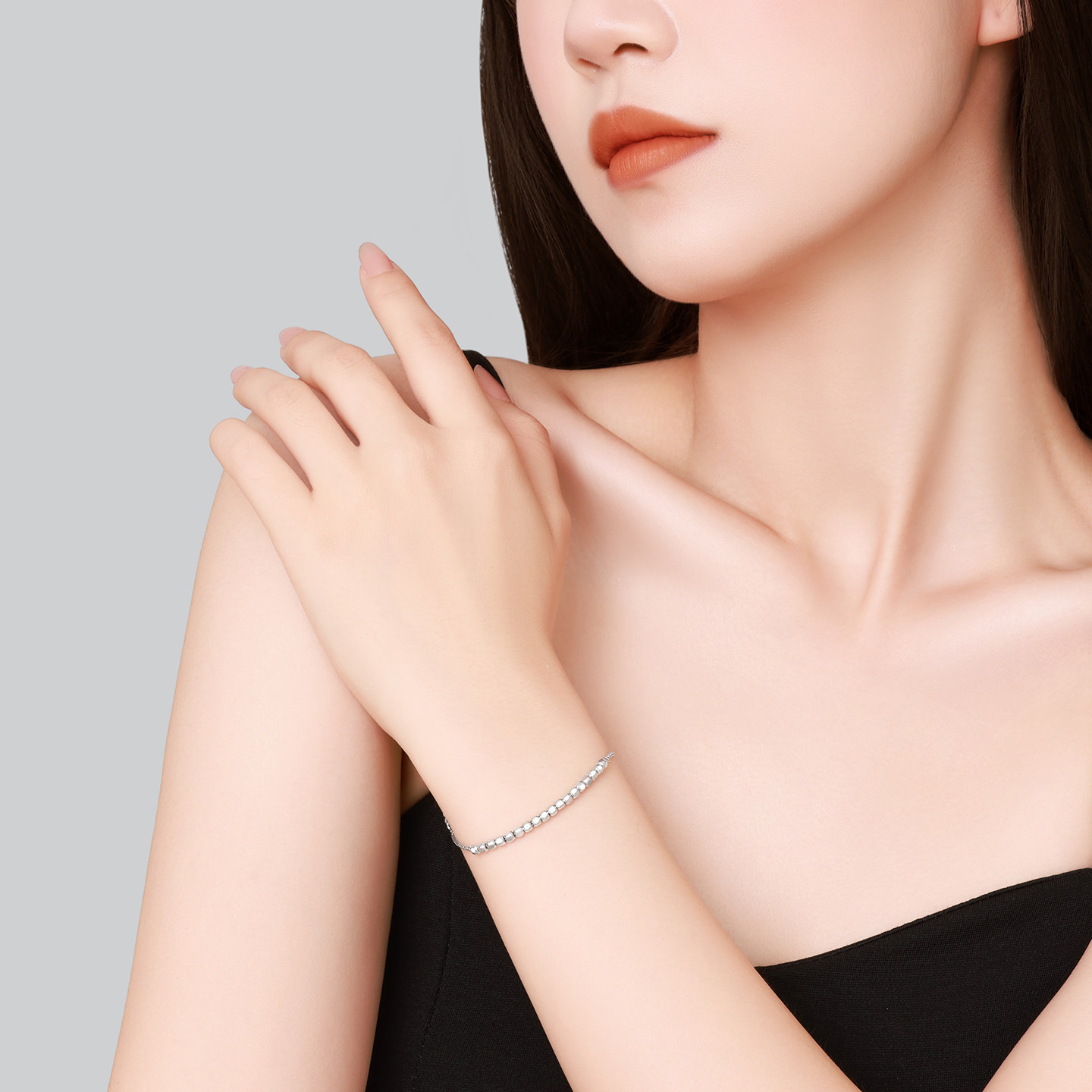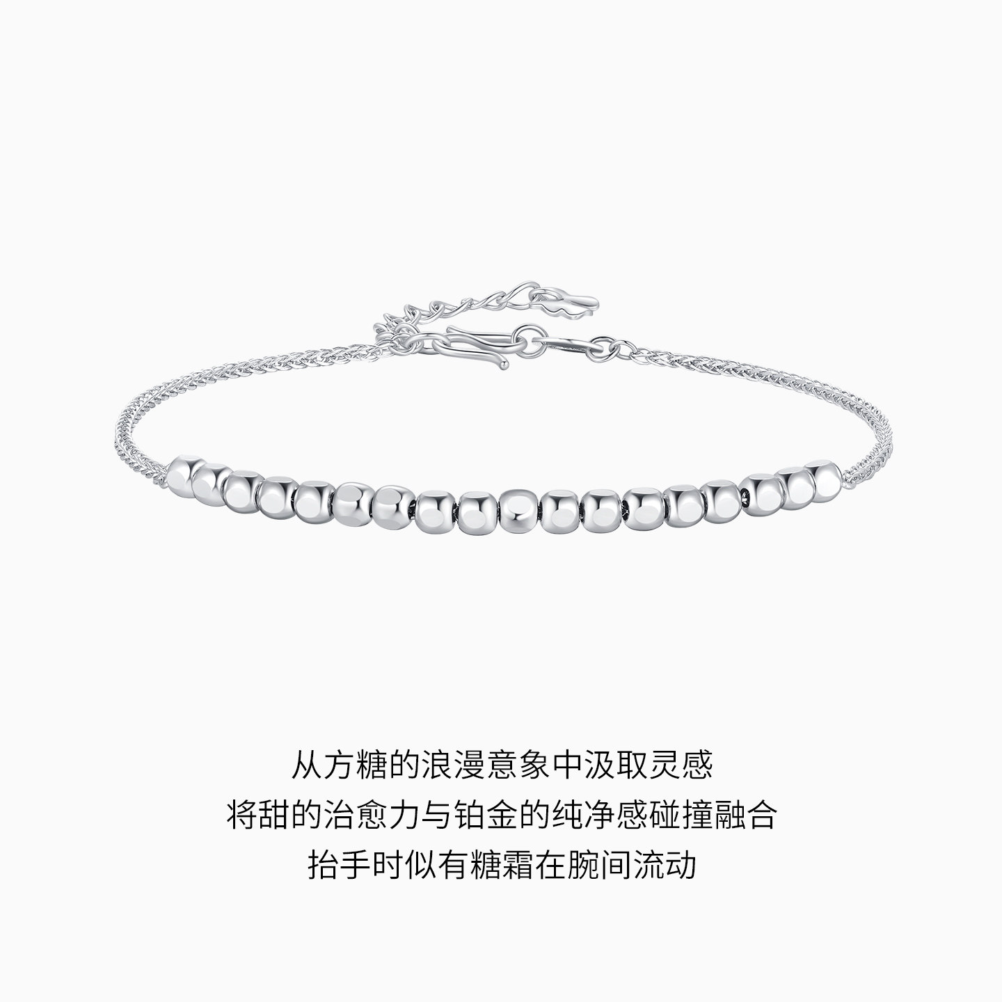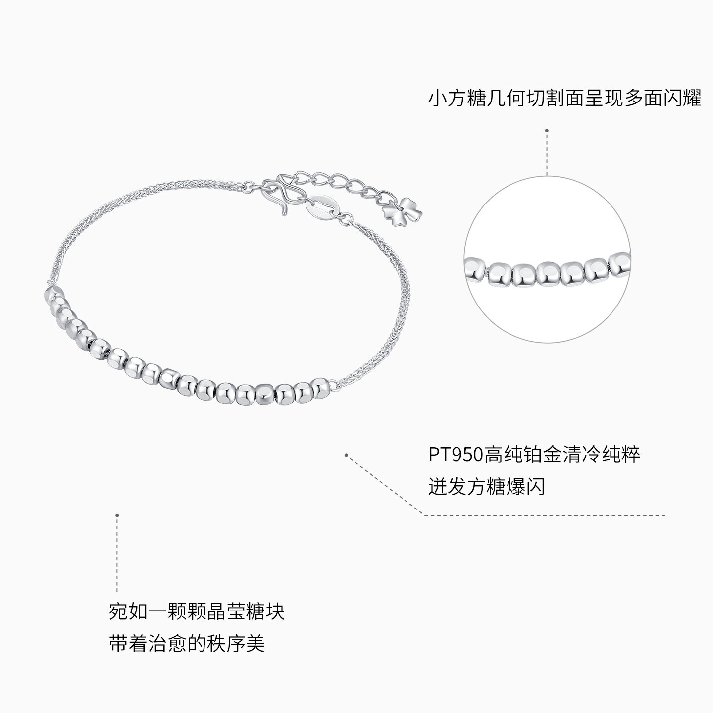 潮宏基爆闪小方糖铂金手链PT950手饰叠戴高级感八方来财生日礼物
