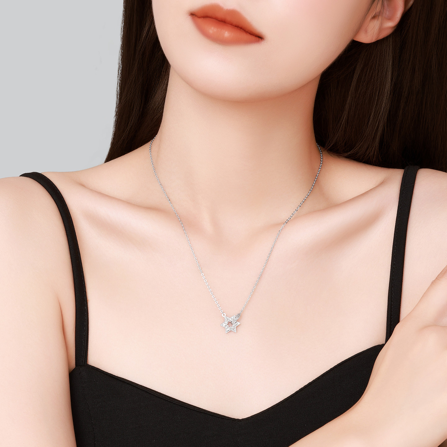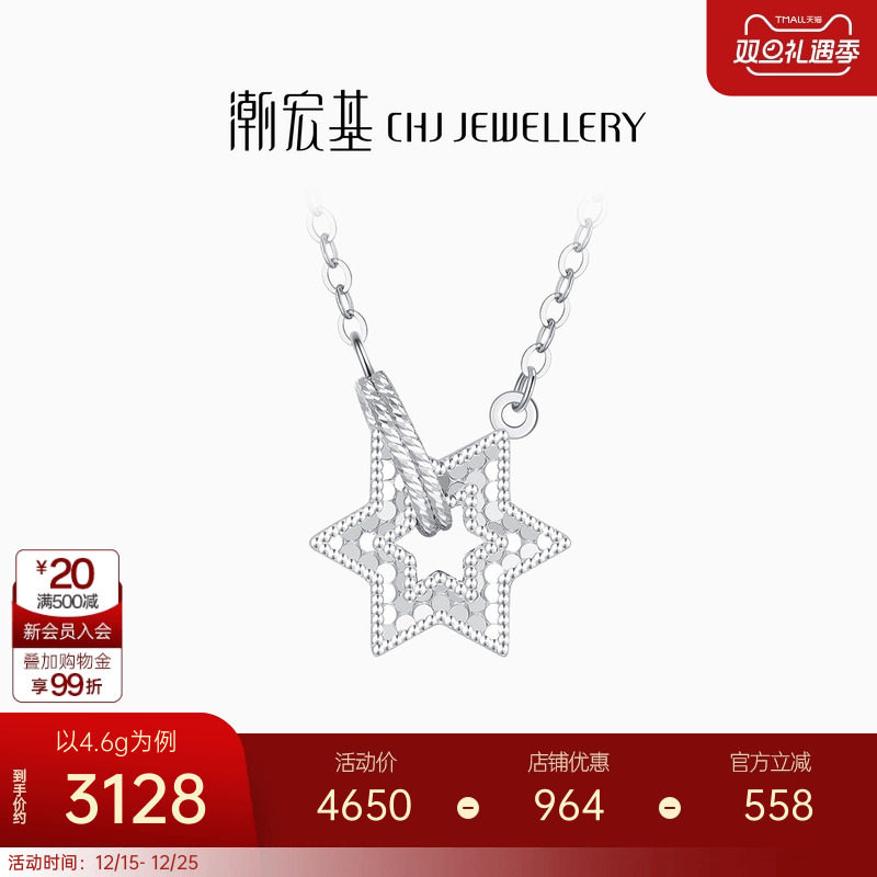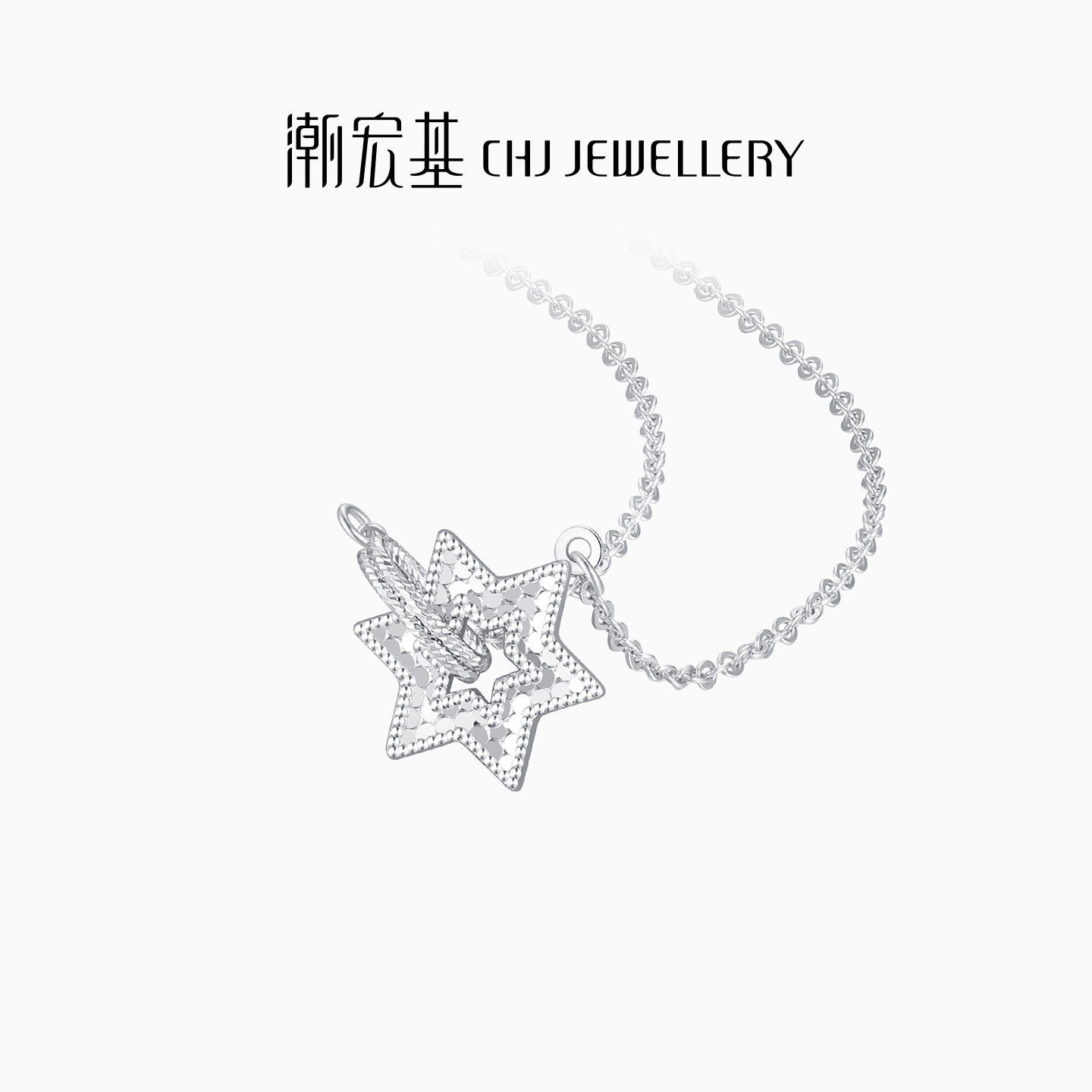 潮宏基爆闪六芒星铂金项链PT950套链锁骨链环环相扣圣诞礼物