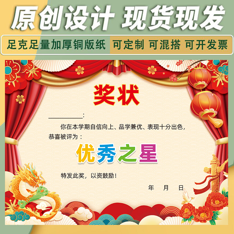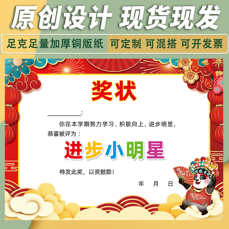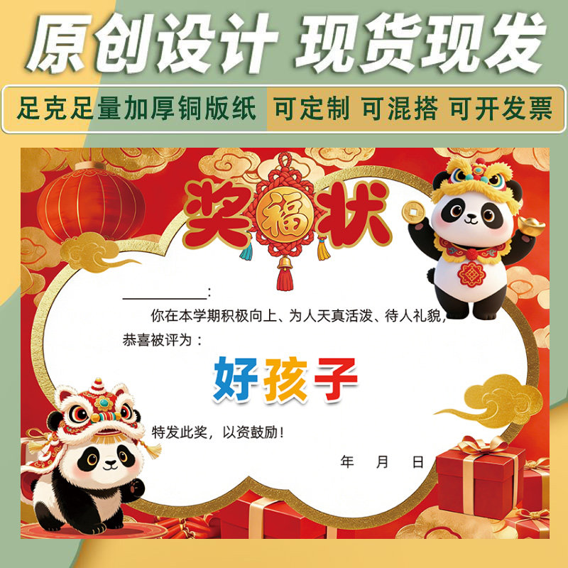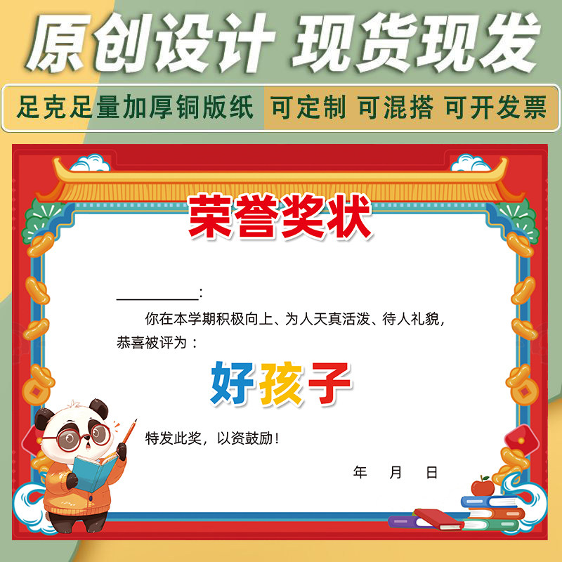 幼儿园好孩子奖状过年红色喜庆多款混学期末表扬信可定制优秀奖状