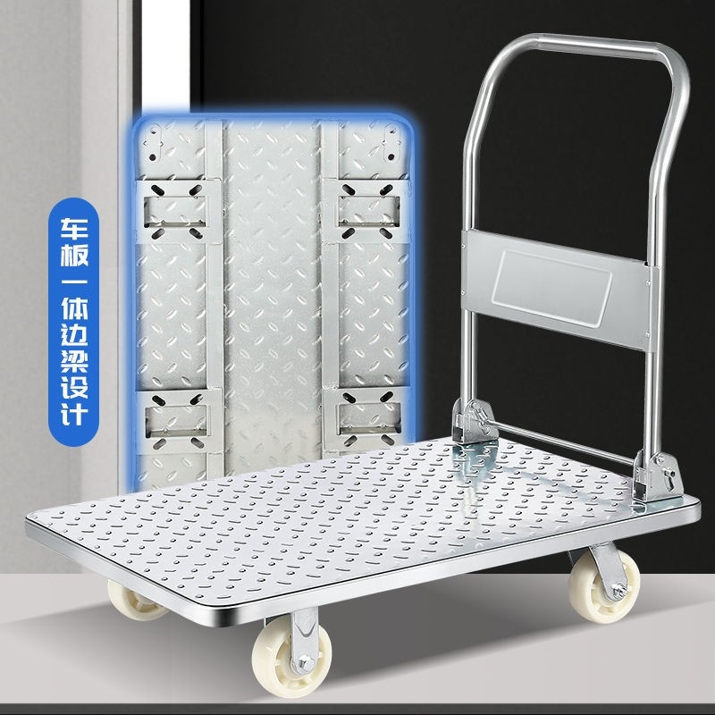 304不锈钢手推车平板车搬运车推货车静音折叠水产海鲜拉货车拖车