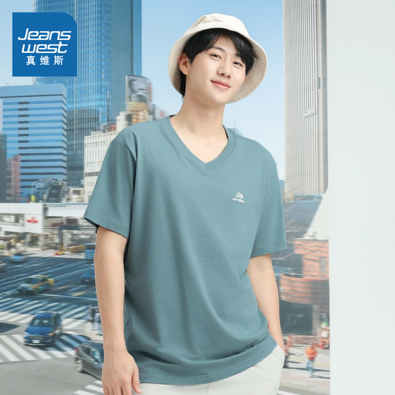 【商场同款】真维斯男装2025夏季新款纯棉舒适简约V领短袖T恤上衣
