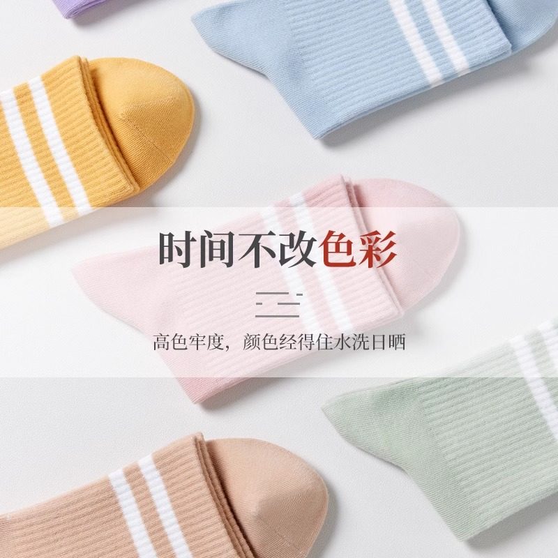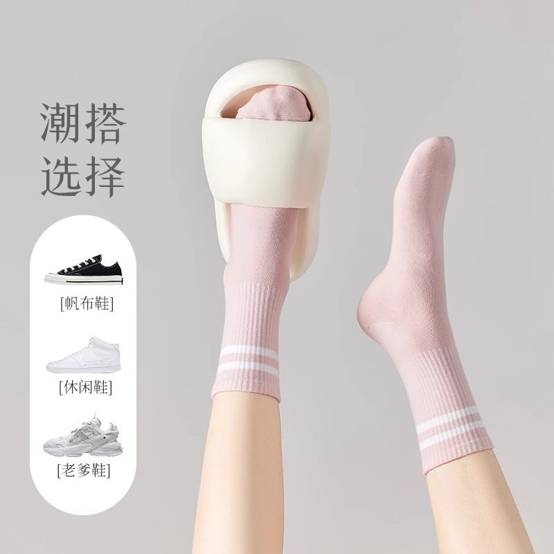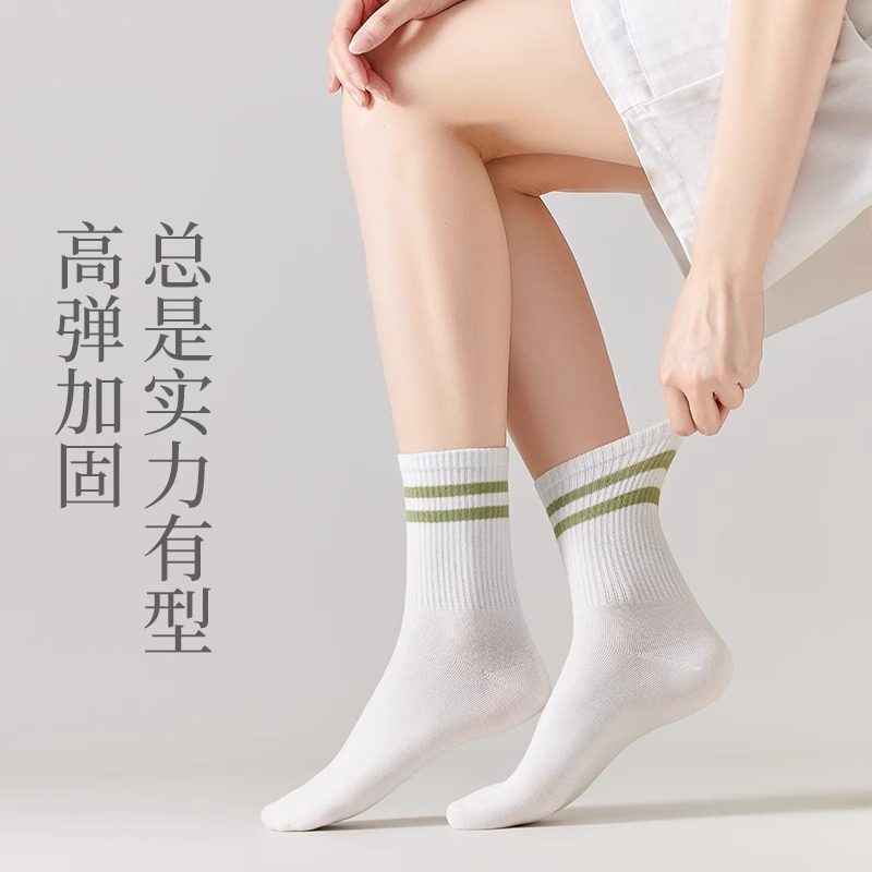 诸暨袜子女士夏季白色中筒袜春秋款防臭吸汗无骨条纹运动百搭长袜