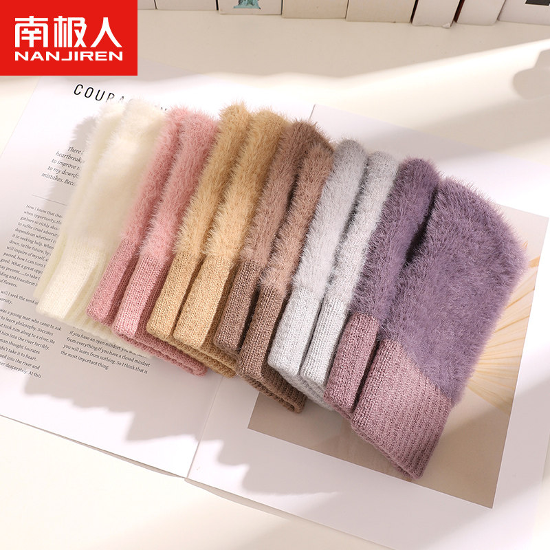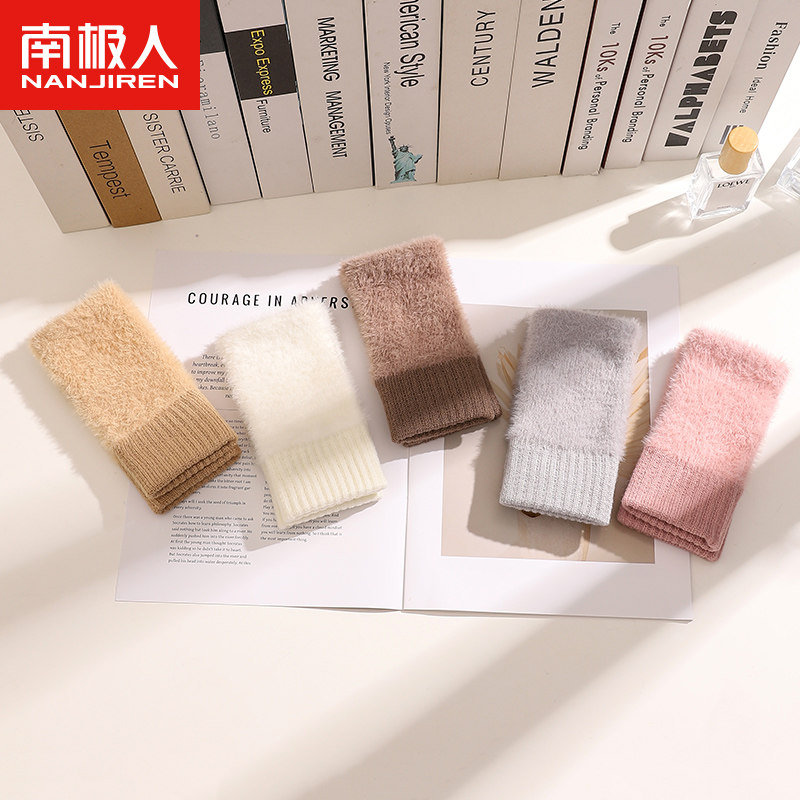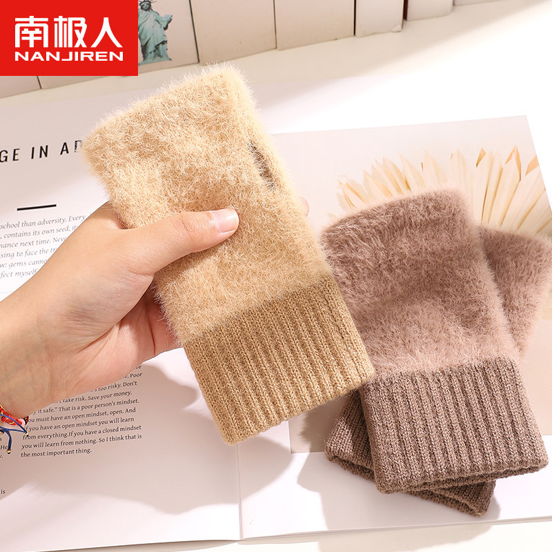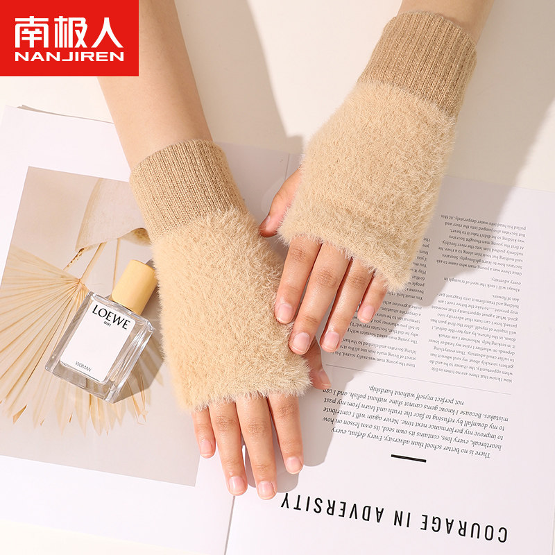 南极人新款半指手套女生冬天毛绒保暖学生写字骑车打字针织护腕H