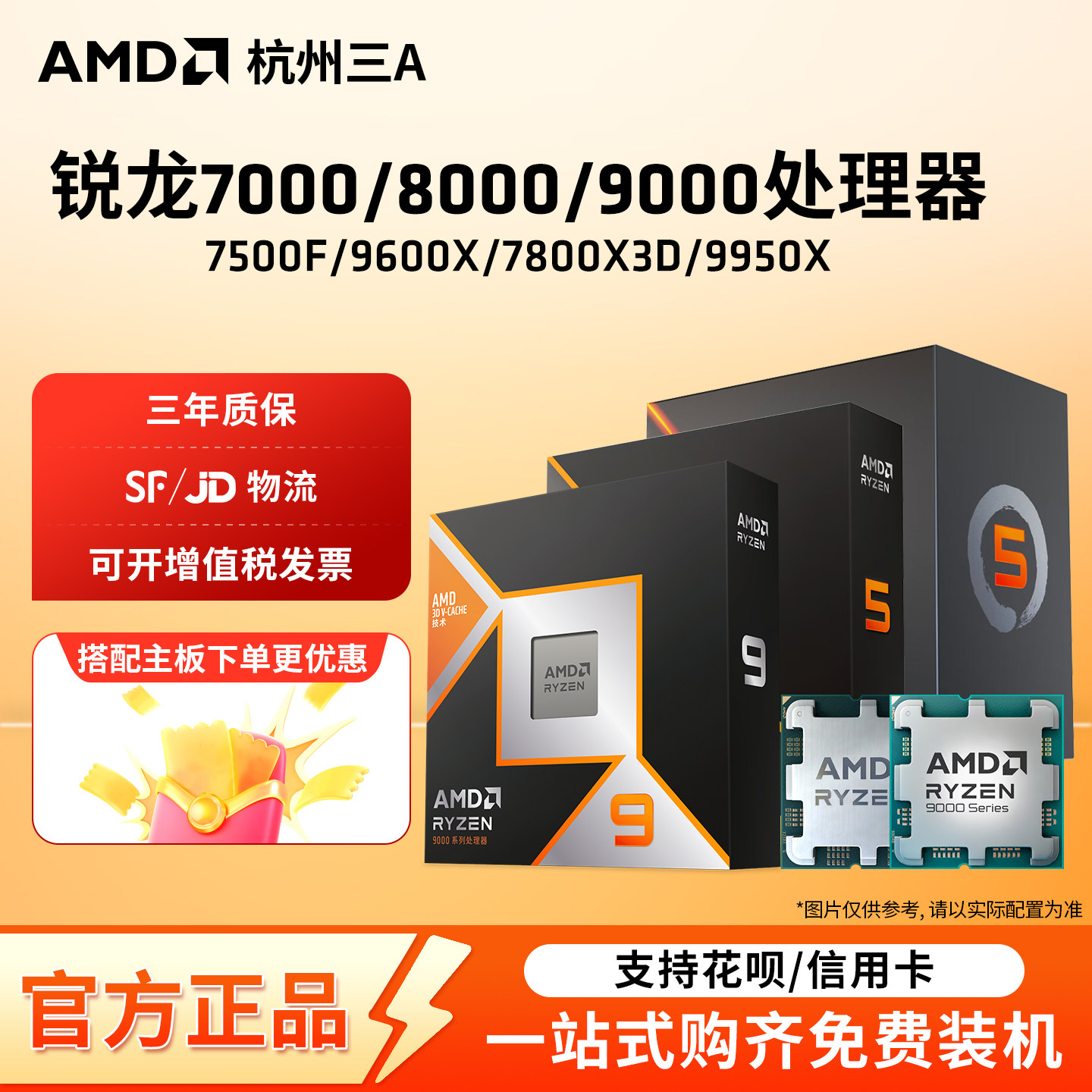 AMD锐龙7400F/7500F/9600X/9700X/9800X9950X3D处理器CPU盒装散片