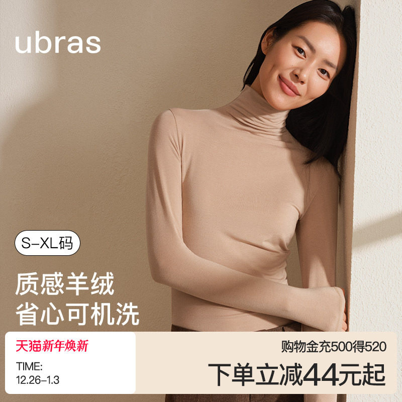 ubras可机洗羊绒肌底衣粉底液保暖背心内衣女上衣打底衫女