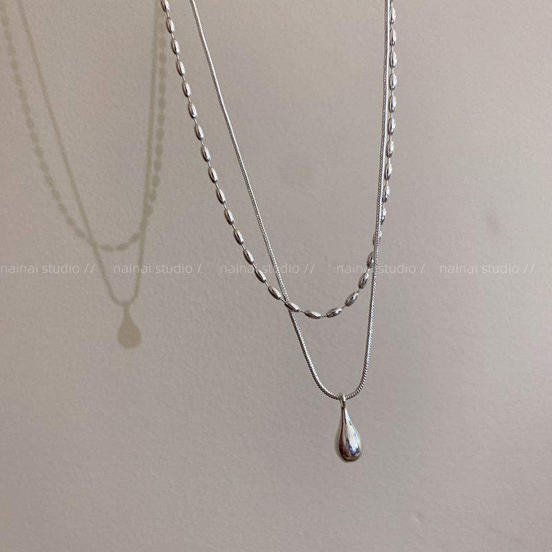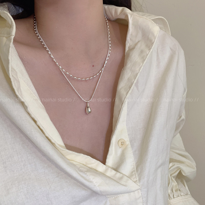 银色双层项链~水滴冷淡风叠戴日常通勤颈链配饰高级感轻奢锁骨链