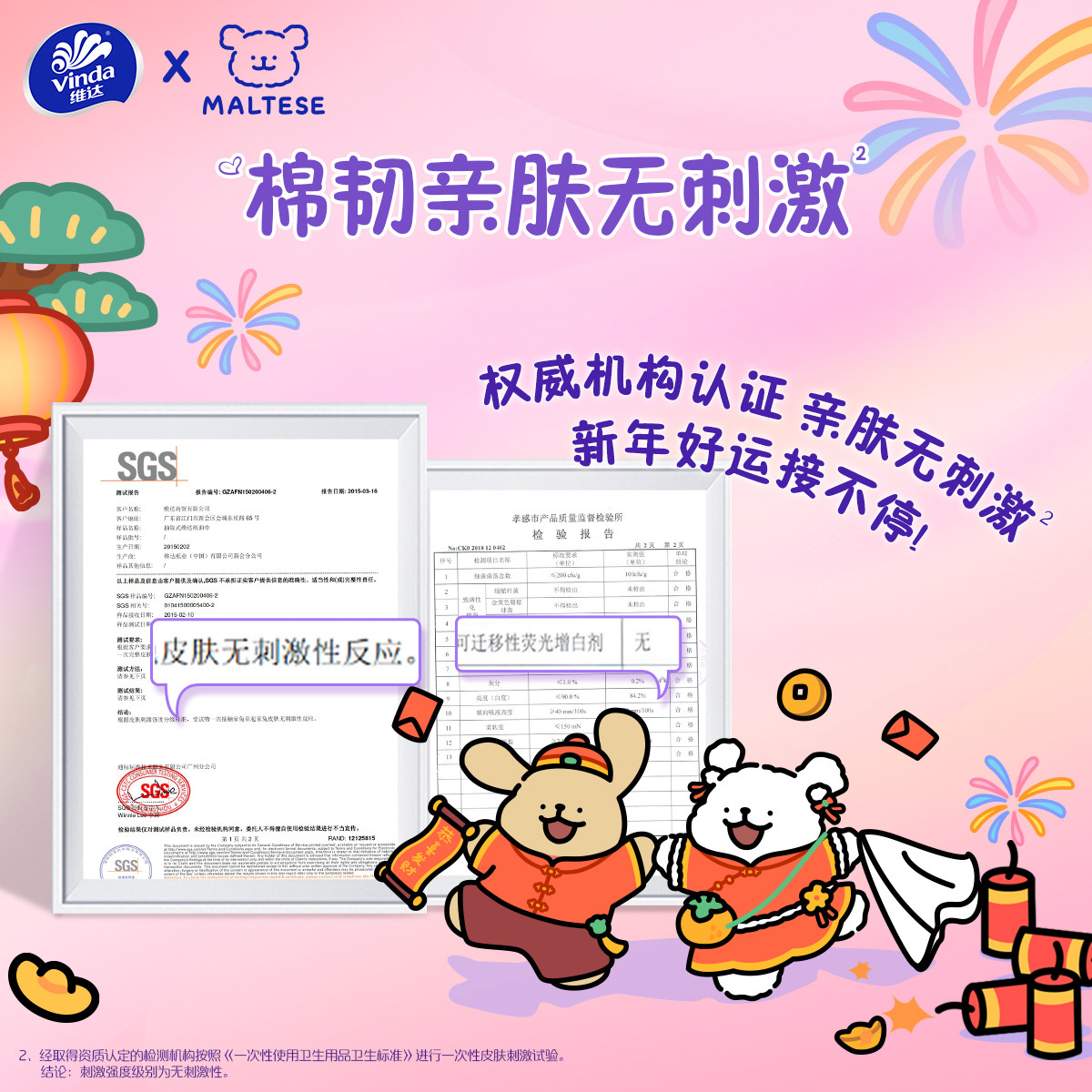 维达棉韧压花抽纸线条小狗3层M码90抽新春卫生纸家用纸餐巾面巾纸