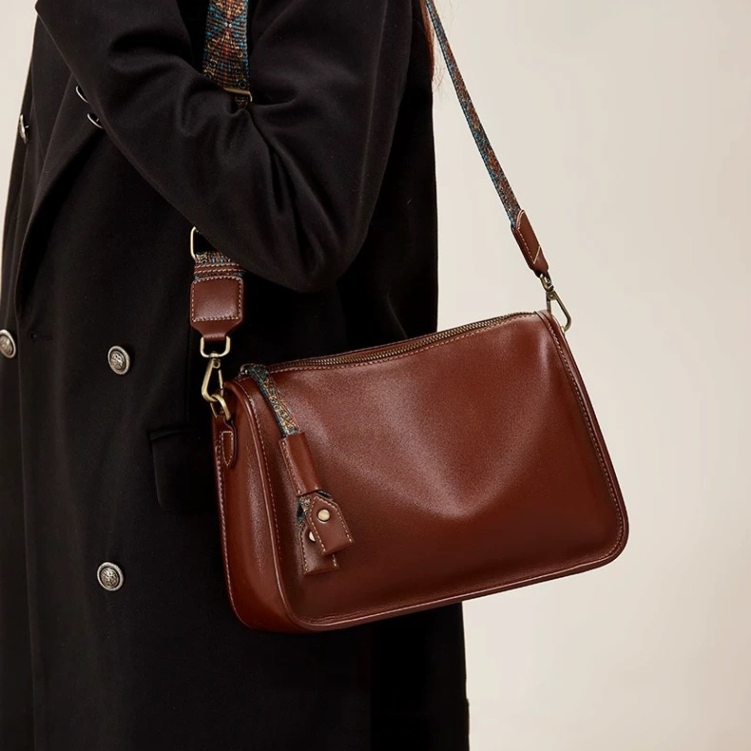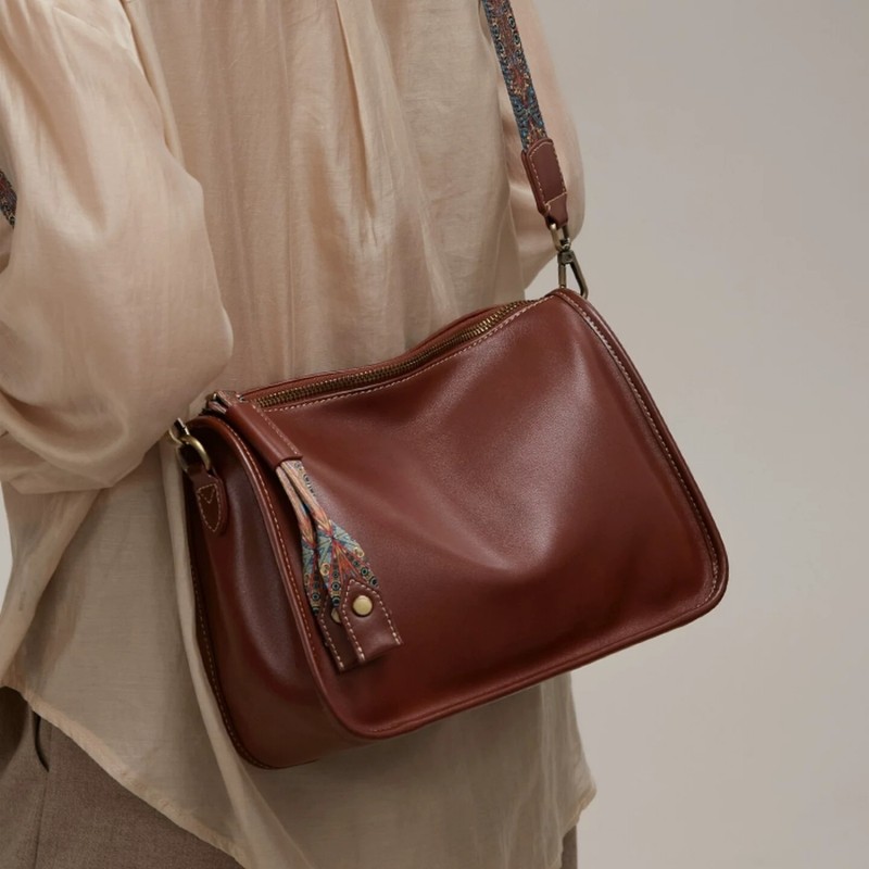 真皮斜挎包女2025新款时尚小方包中年女包妈妈包头层牛皮单肩小包