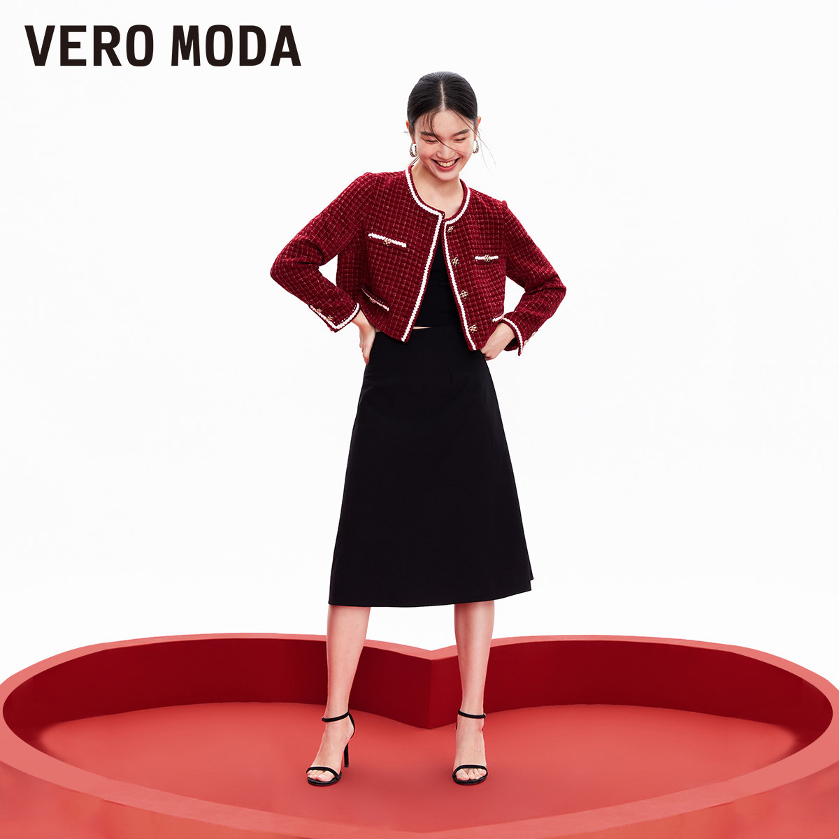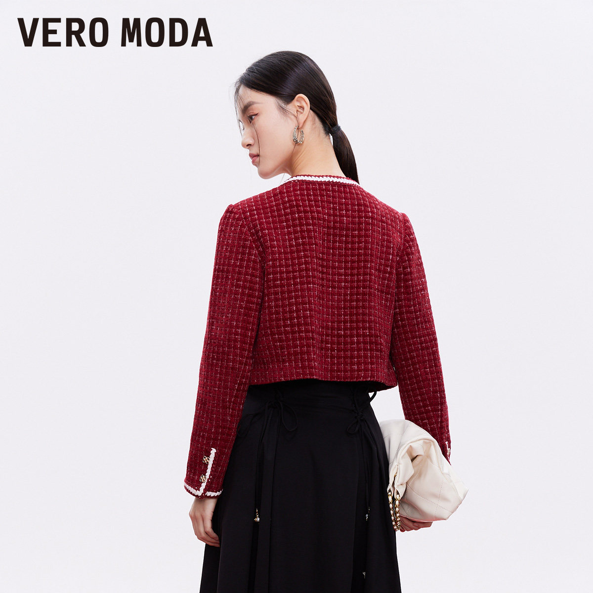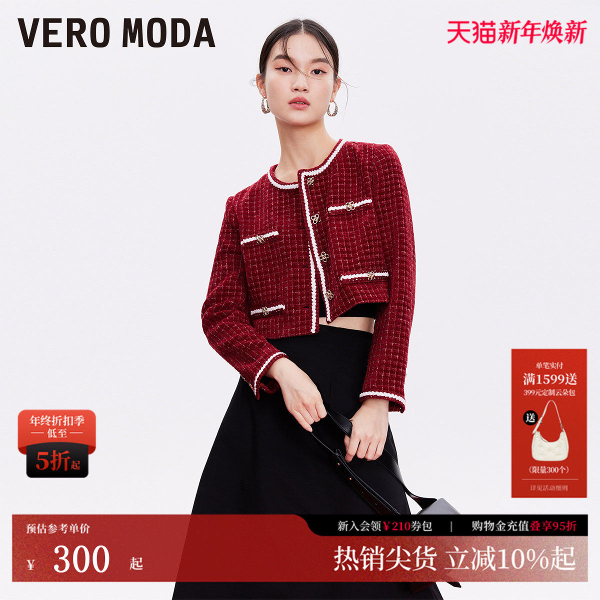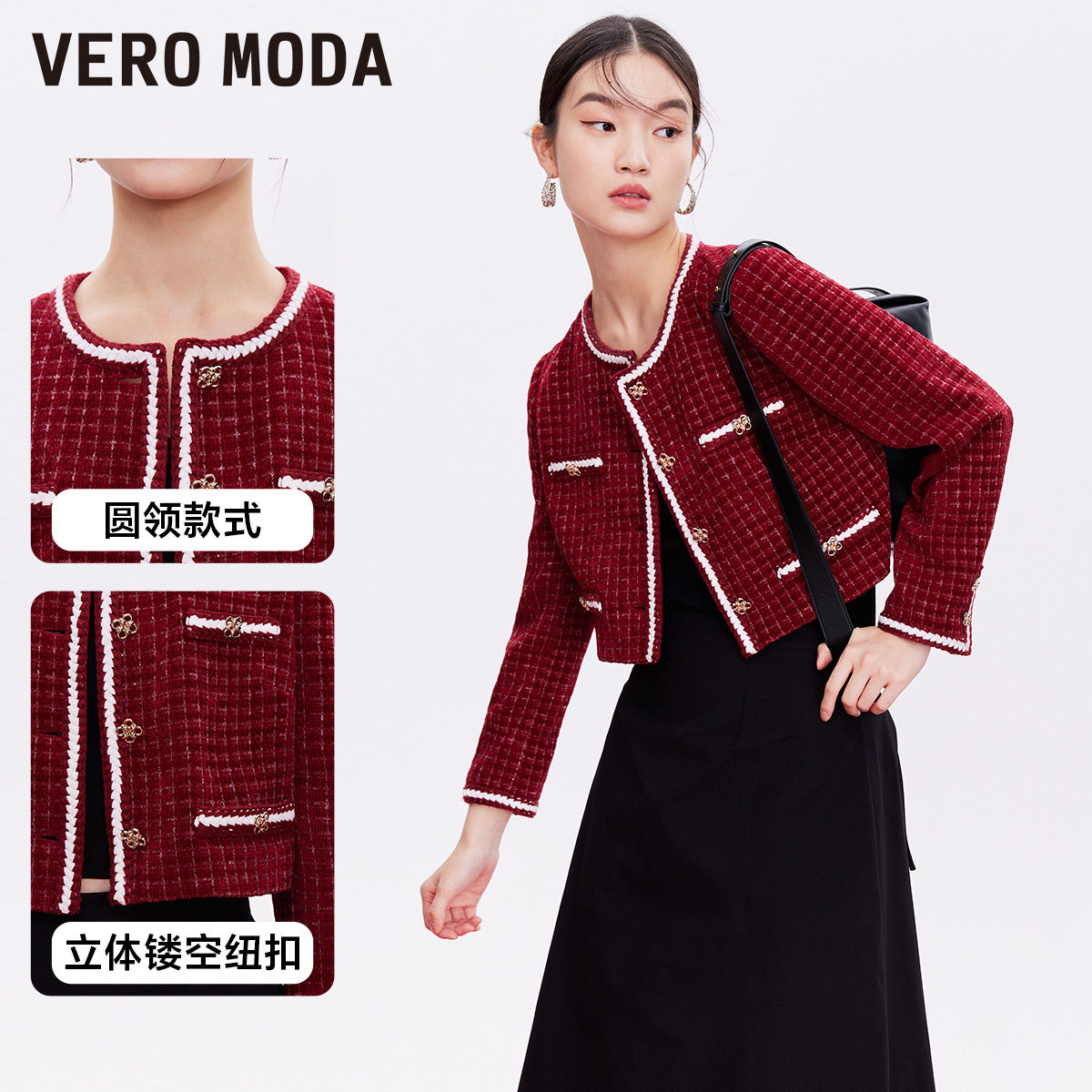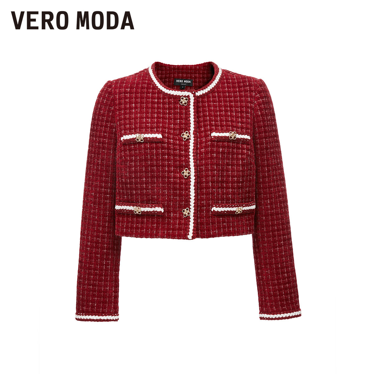 Vero Moda外套2025夏新小香风纹理面料短款拼色夹克3251J9010