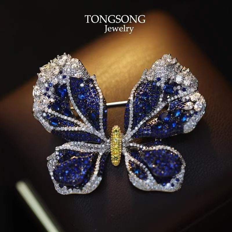 新品爆款奢华微镶闪钻高级蓝蝴蝶胸针重工气质大衣西装配饰女胸花