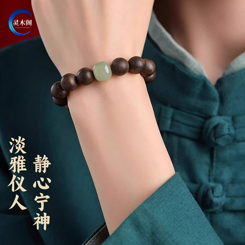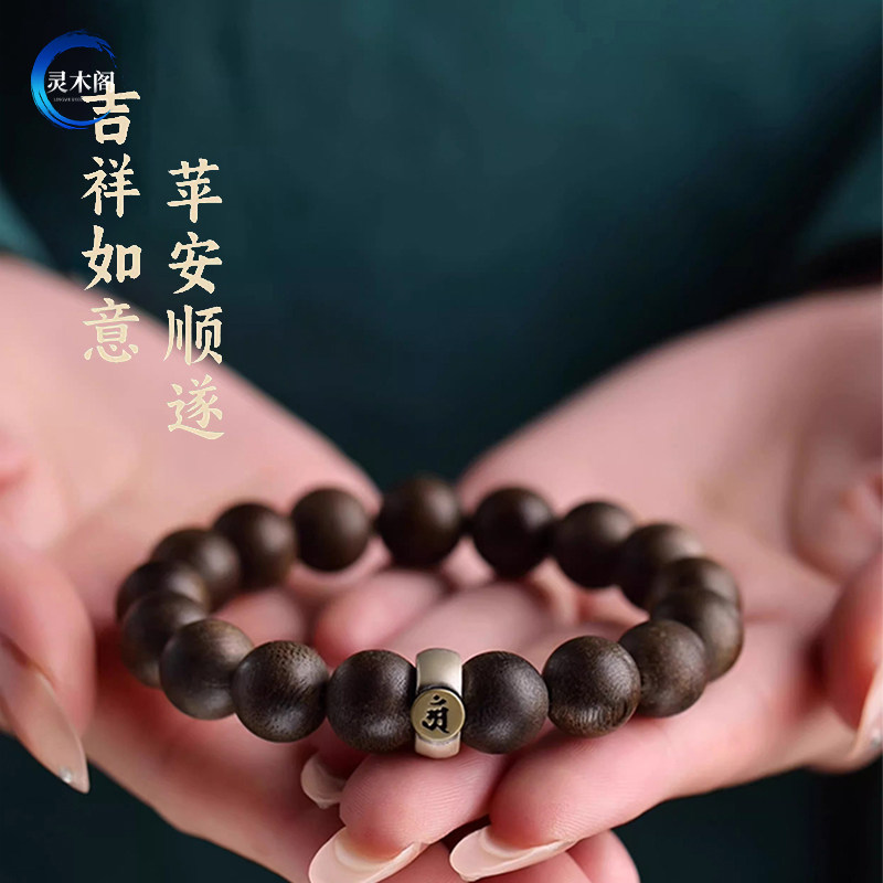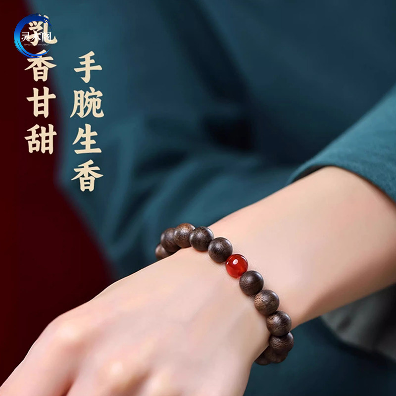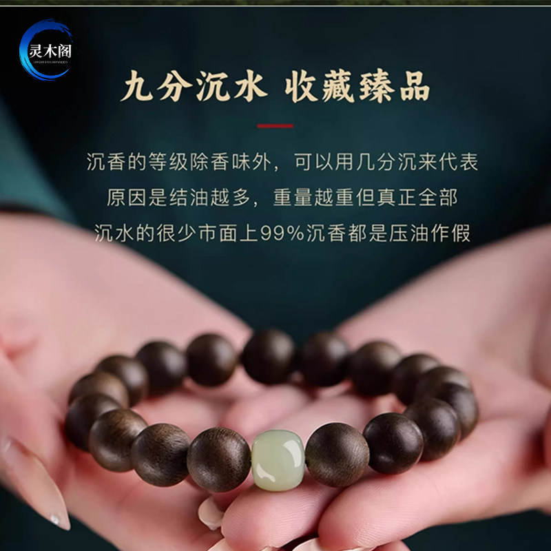 真品越南芽庄奇楠沉香手串男款沉水级木质文玩佛珠手链女和田玉