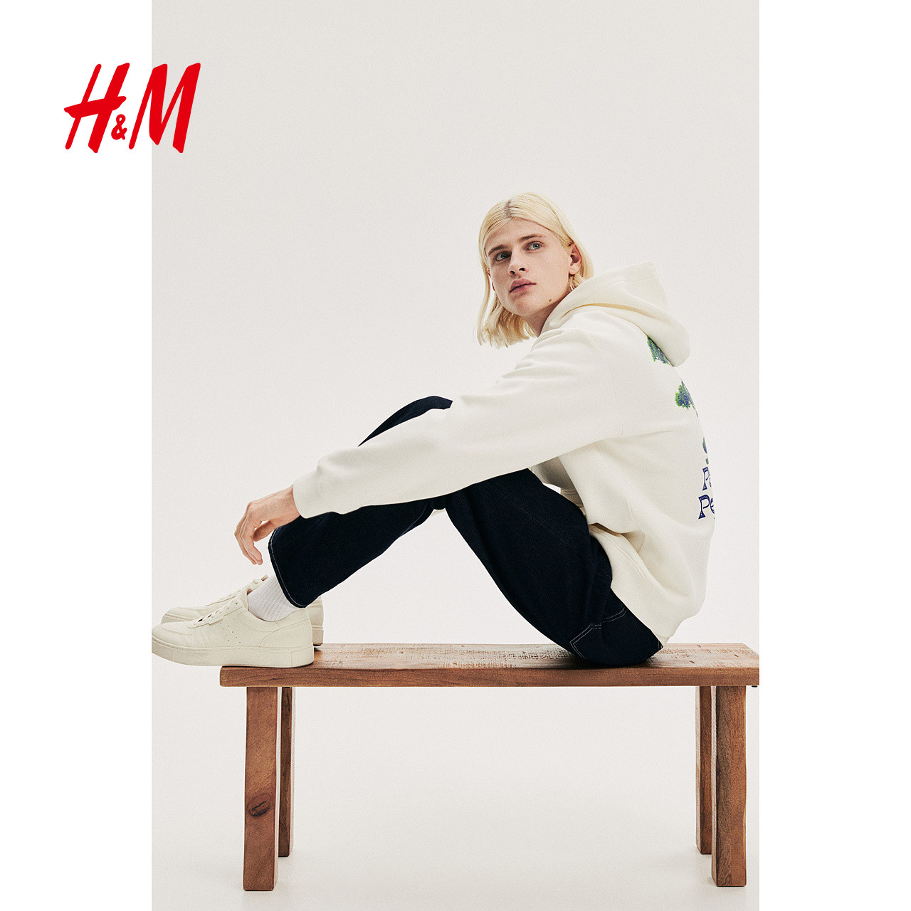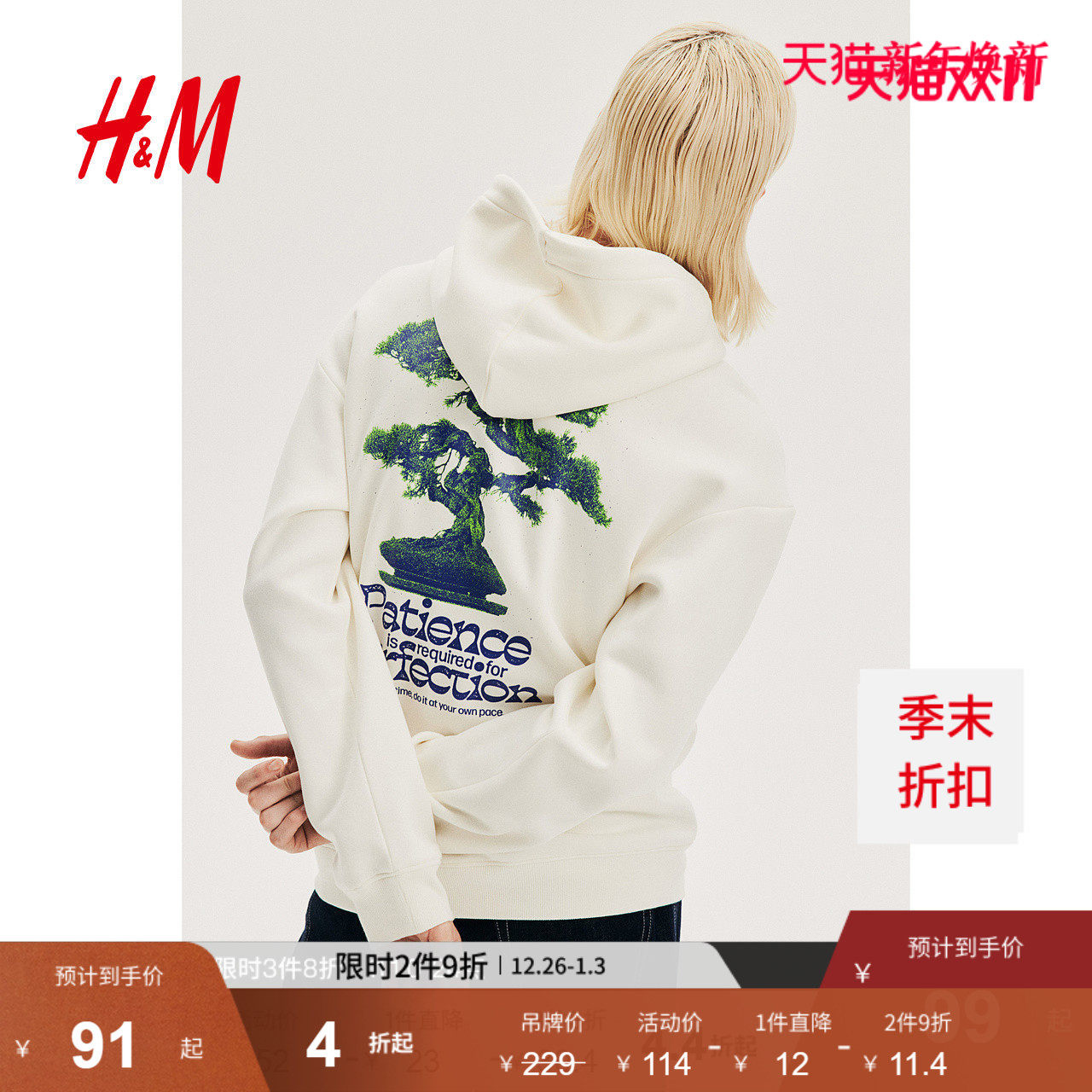 HM男装女装卫衣加绒宽松美式盆景印花情侣连帽衫打底衫1122659