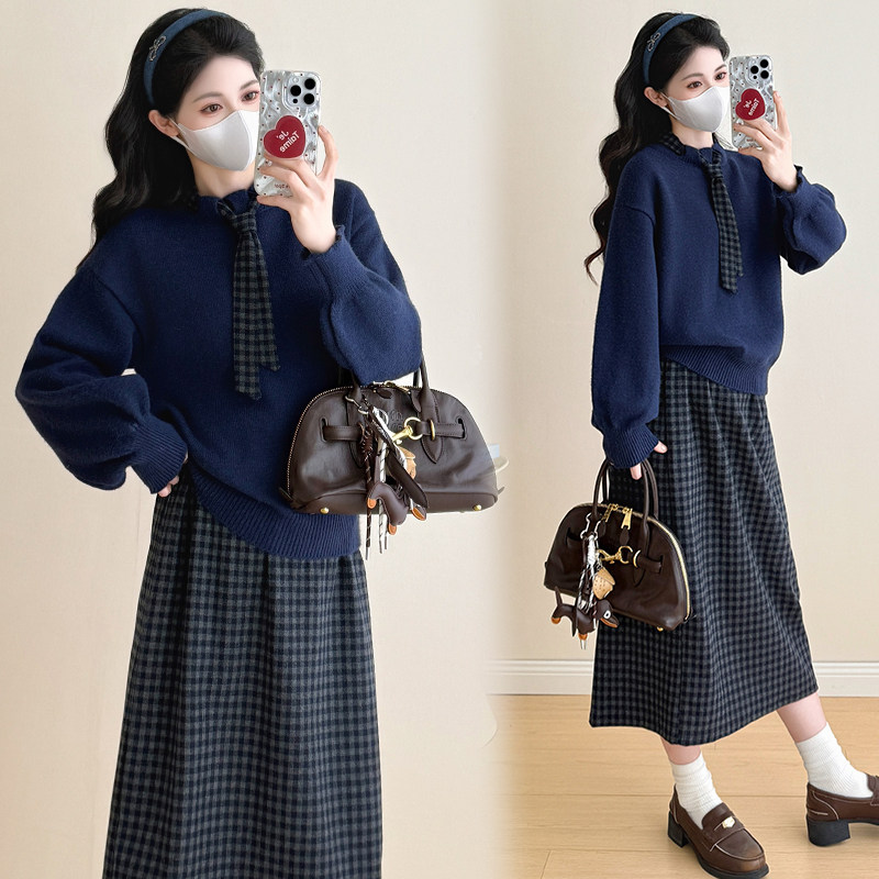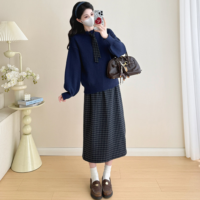 孕妇装秋冬套装孕妈高级感穿搭秋冬季大码毛衣半身裙慵懒风两件套