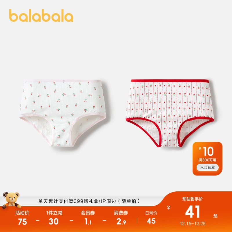 巴拉巴拉女童内裤莫代尔儿童三角短裤不夹PP萌两条装棉档底舒适潮