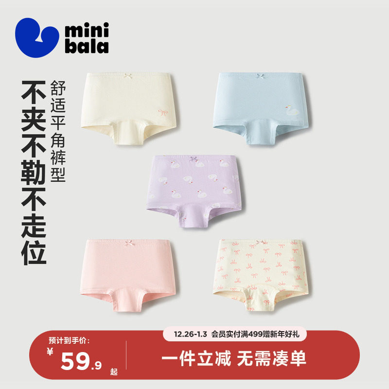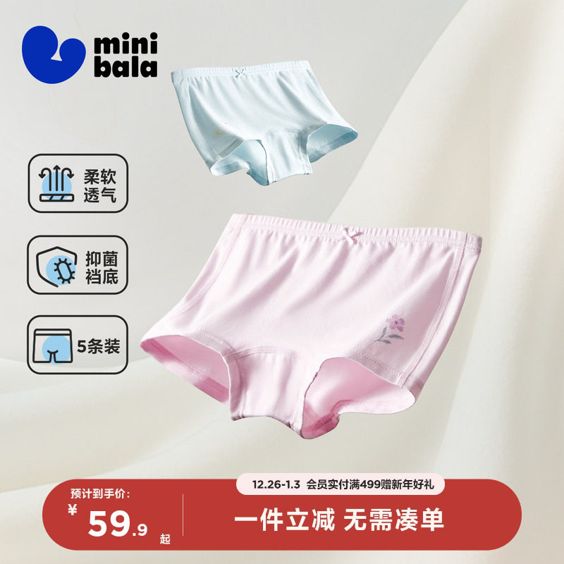 【5条】迷你巴拉儿童内裤女童宝宝亲肤透气抑菌平角短裤不易卡pp