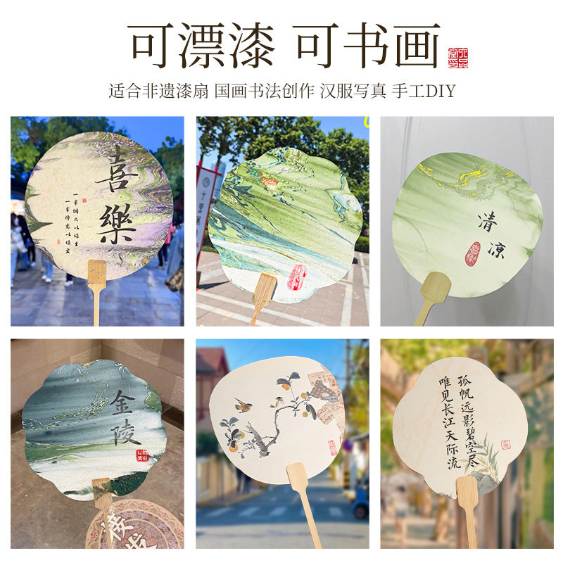 宣纸团扇空白扇子双面加厚漆扇半生熟扇面国画古风绘画书法文创毛笔专用手工diy材料包圆形中国风宣纸扇