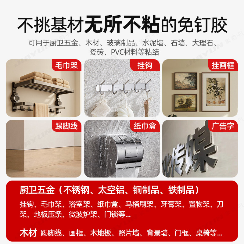 高粘度免钉胶贴墙专用粘得牢金属墙面置物架挂钩瓷砖地板踢脚线