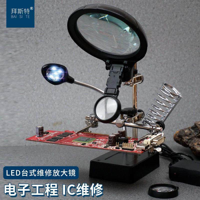 放大镜维修用台式带灯手机电子家电电路板焊接高清10倍工作台支架