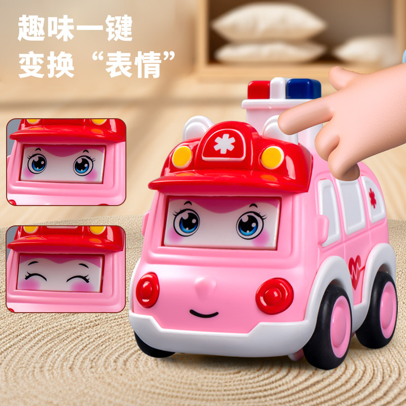 儿童按压式变脸消防车挖掘机救护警车玩具男孩子宝宝小汽车工程车